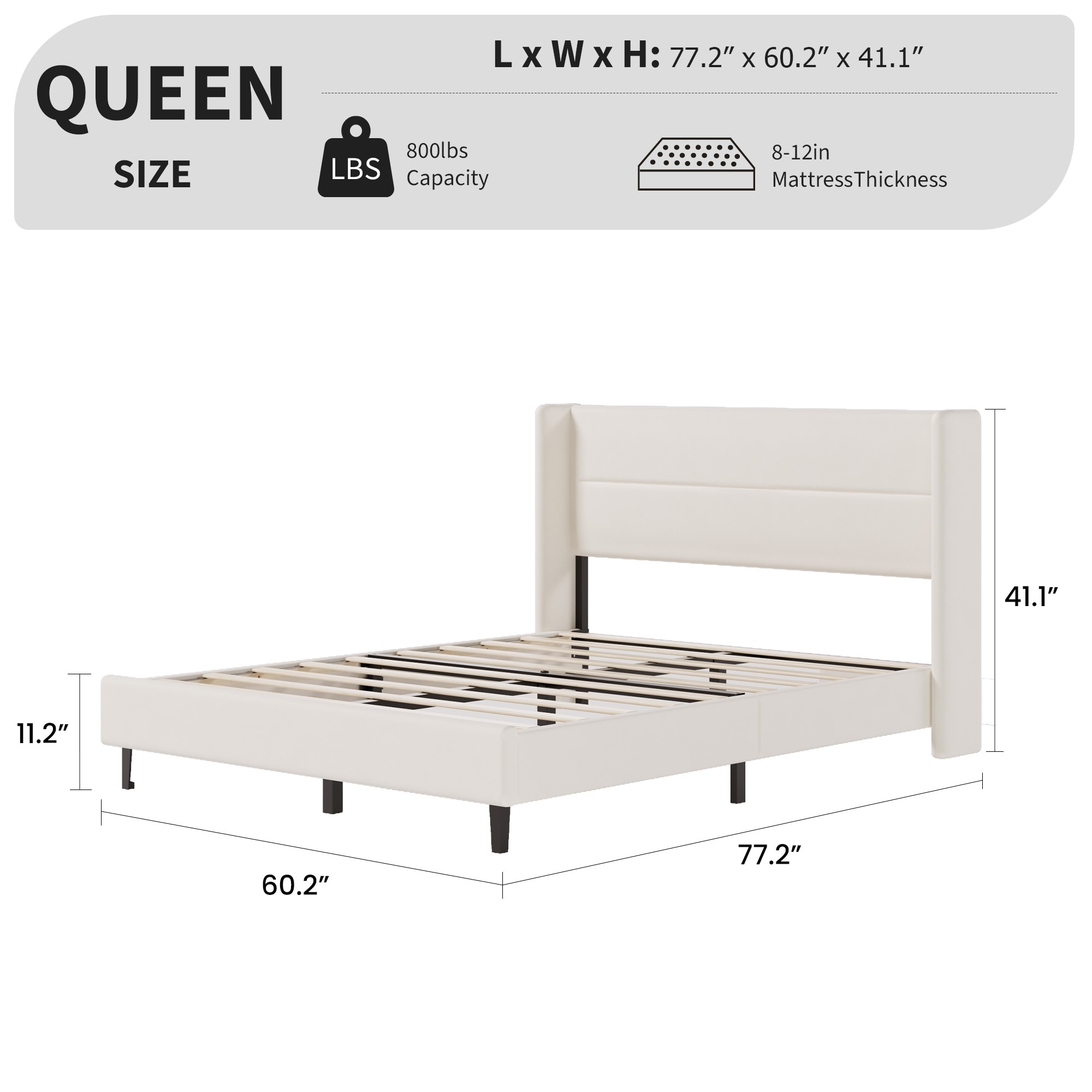 Queen Bed - Modern Upholstered Platform Bed with Storage, Wooden King Twin Size Bed Frame