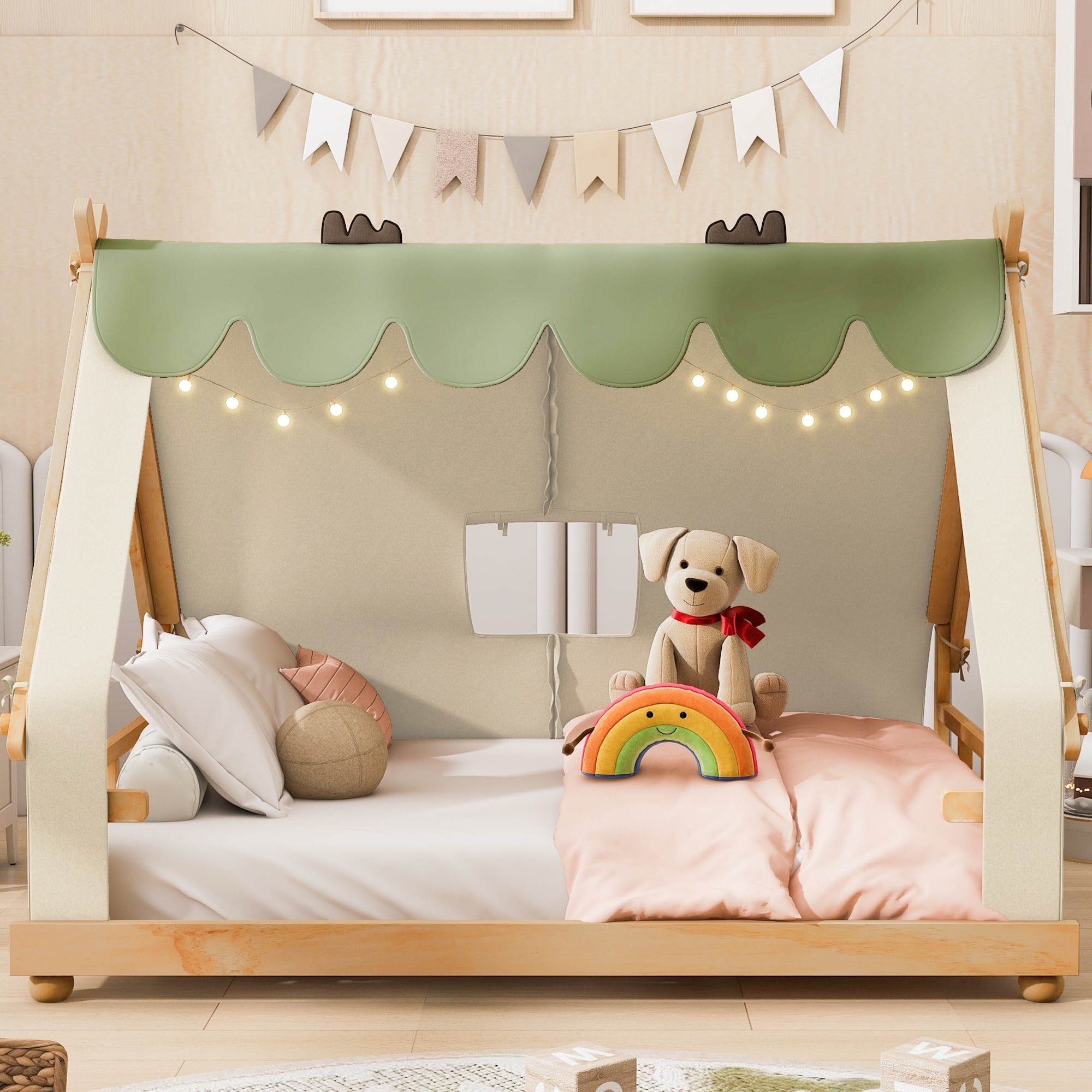 Full Size House Bed with Tent and Light, 79.5"L x 57.8"W x 62.9"H