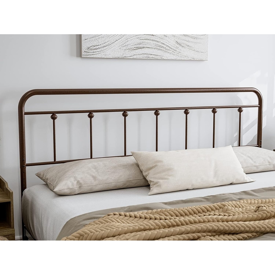 Metal King Size Headboard, Adjustable Height 34"-44.6", Farmhouse Victorian Style, Easy Assembly, Steel Frame for Bedroom, Brown