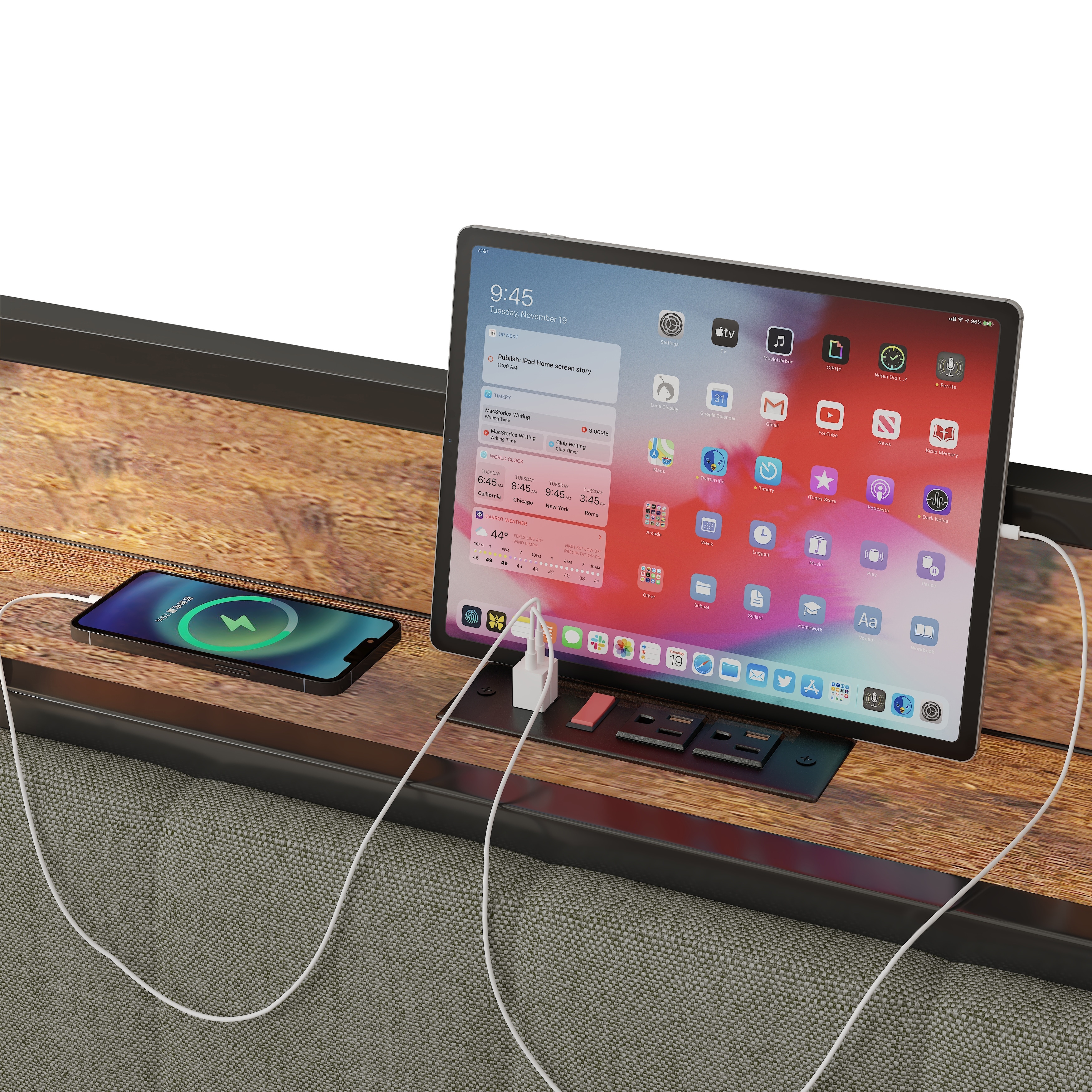 Queen Size Bed Frame With Charging Station Upholstered Headboard Metal Platform