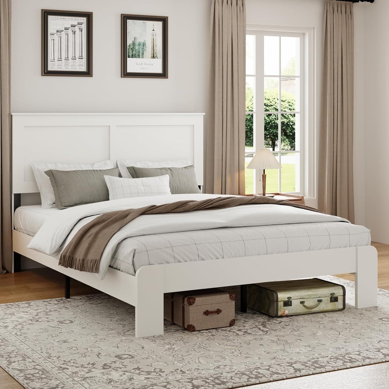 Rustic Farmhouse Queen Bed Frame with Headboard, 12 Wood Slats Support, No Box Spring Needed