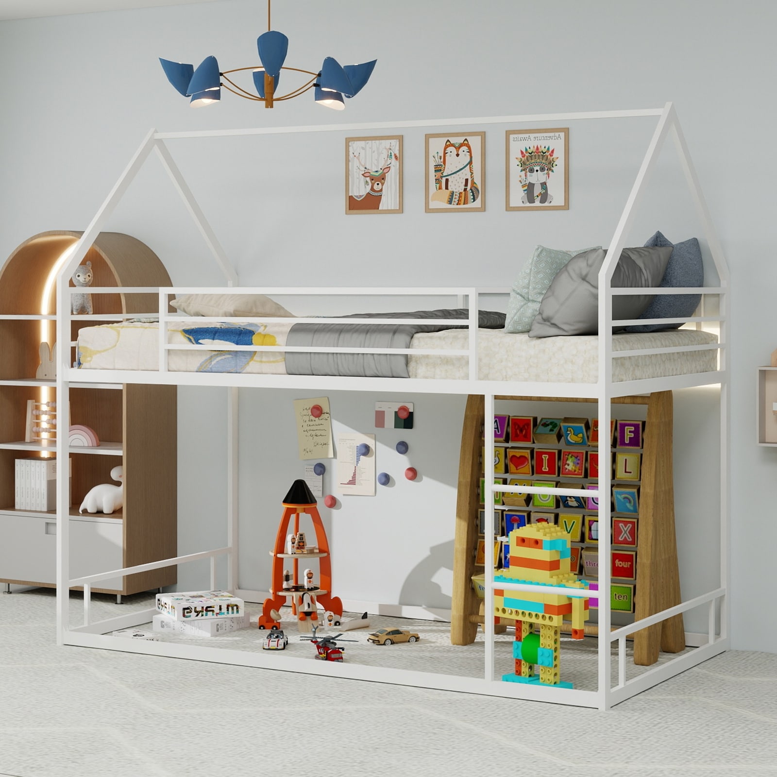 Junior Metal Twin Loft Bed With Guard Rails And Stairs