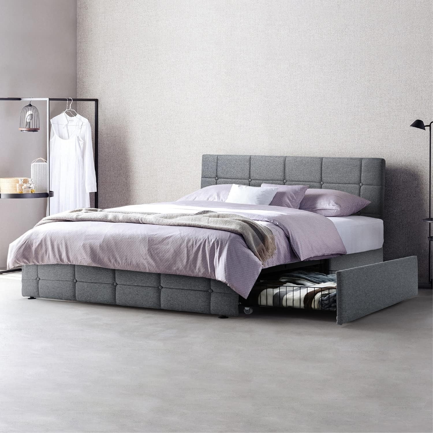 Full Size Upholstered Storage Bed Frame with Adjustable Headboard, 4 Drawers, and Wood Slat Support, Light Grey