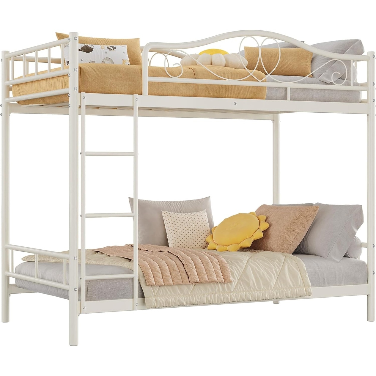 Twin Over Twin Metal Bunk Bed with Ladder & Guardrails, 400 lb Capacity, Space Saving, Cream