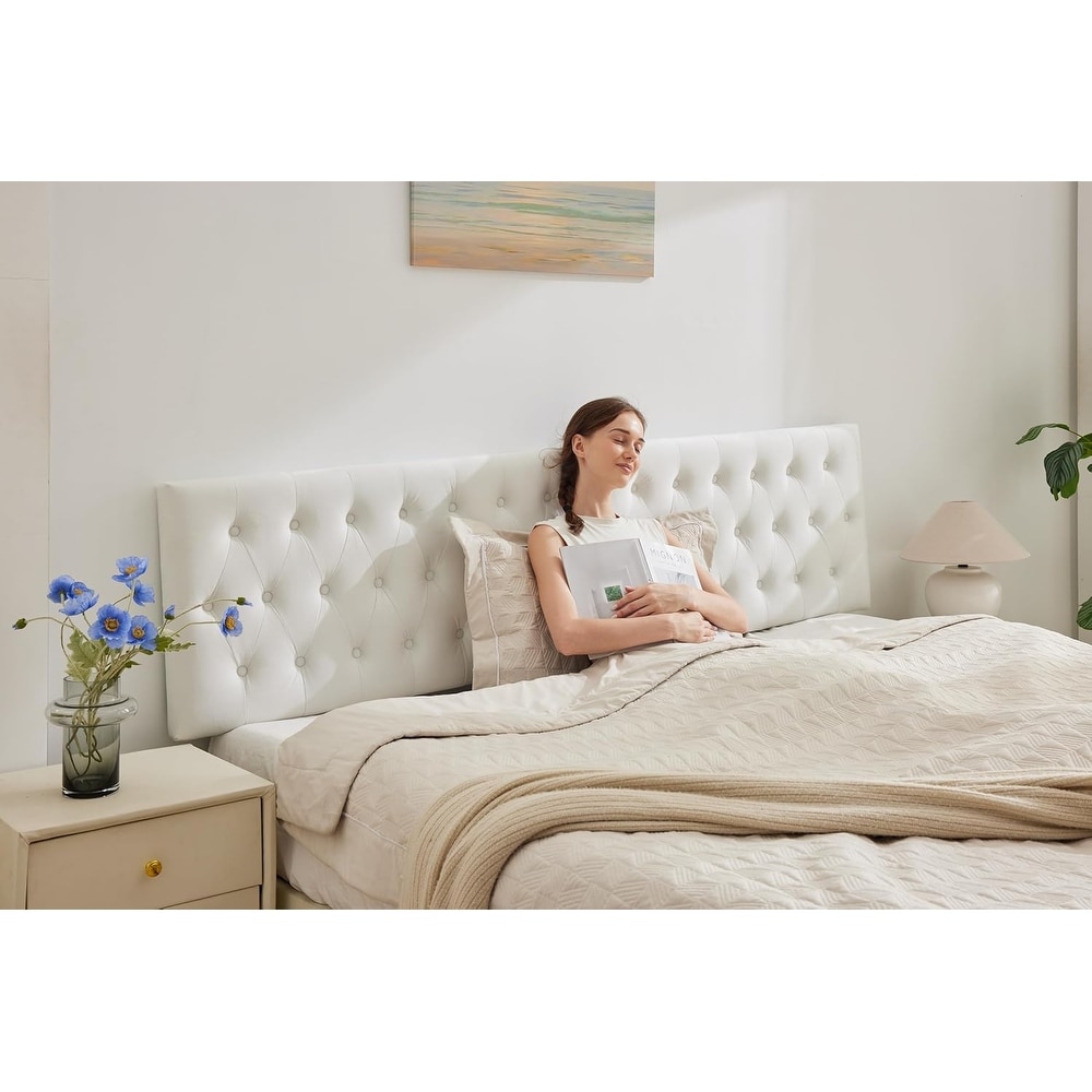 Tufted Upholstered King Size Bed Headboard with Adjustable Height, Modern Button Design, Premium Velvet Fabric, Solid Wood Frame