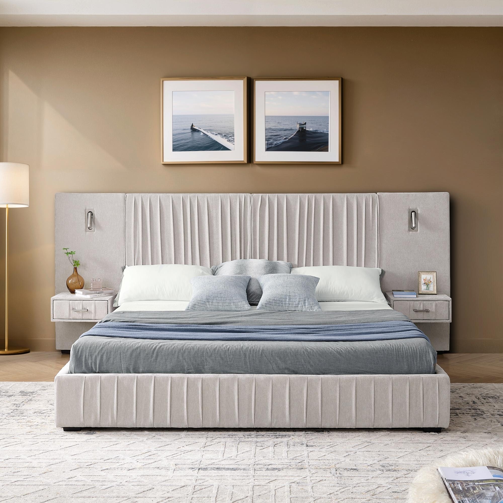 Upholstered Platform Bed with Headboard & Nightstand