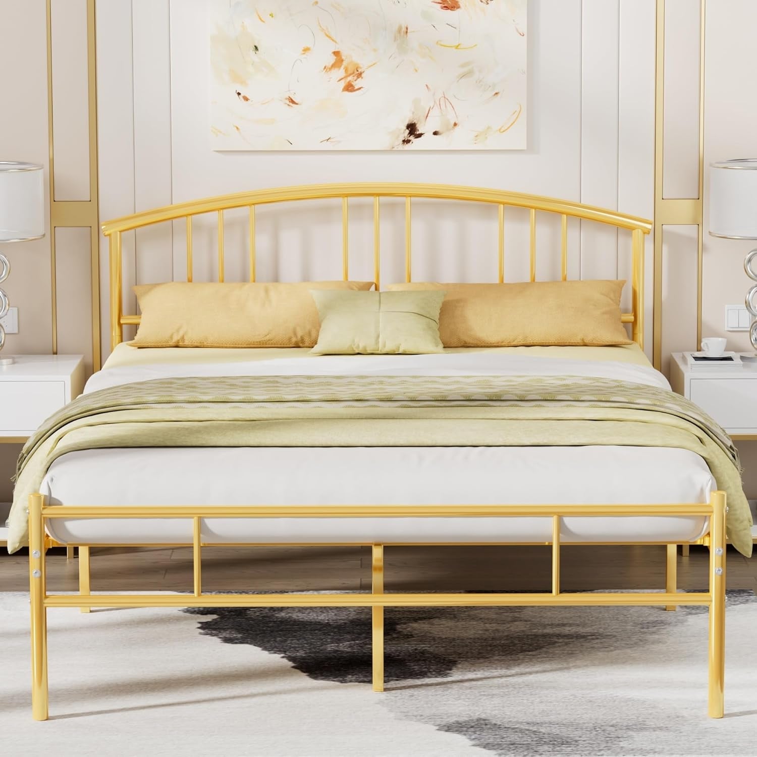 Twin Size Metal Platform Bed Frame with Victorian Headboard, Easy Assembly, No Box Spring Needed, Antique Gold Finish