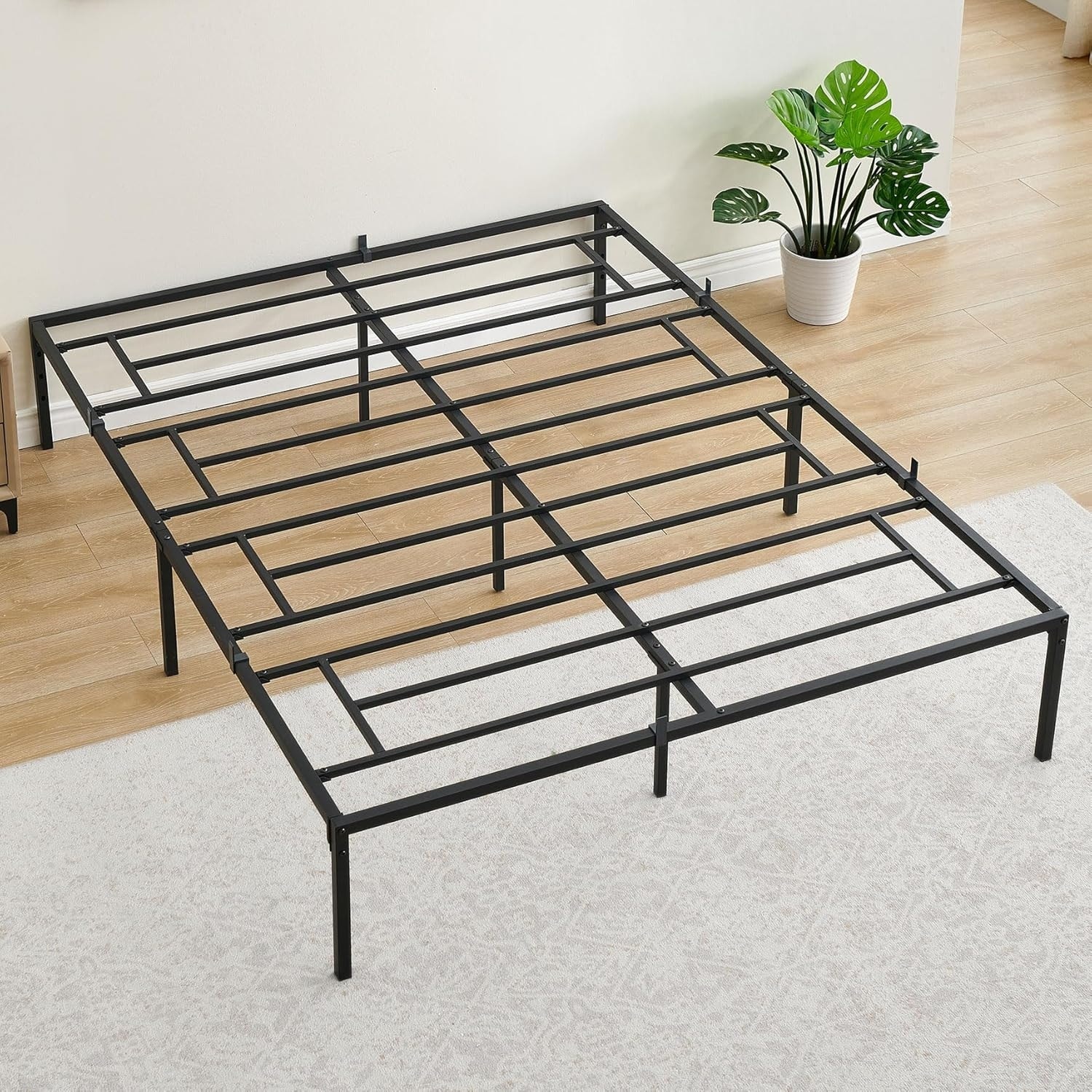 14 Inch Black Metal Queen Bed Frame, No Box Spring Needed, Platform Bed