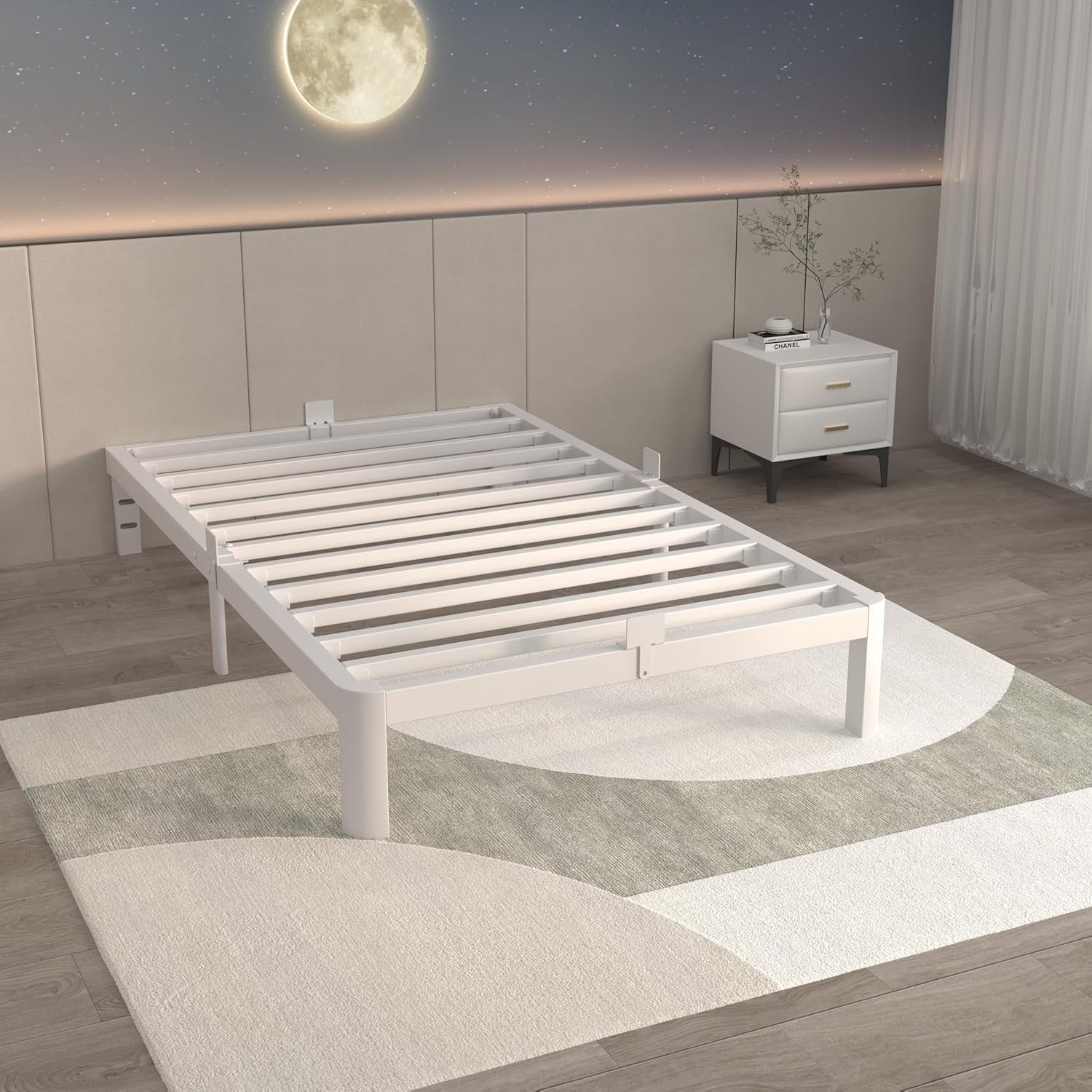 10 Inch White Metal Twin Bed Frame, Heavy Duty, No Box Spring Needed, Anti-Slip, Easy Assembly, Large Storage Space