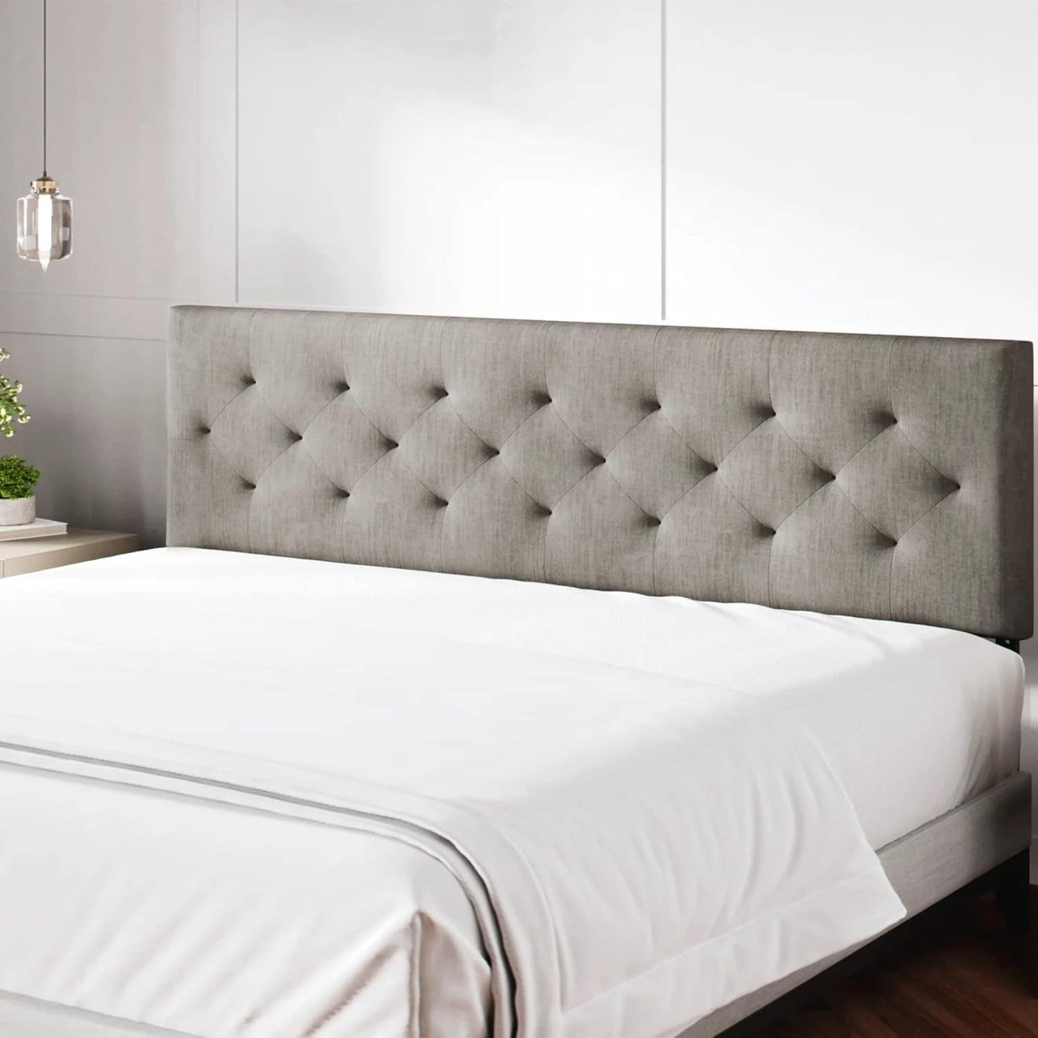 Diamond-Tufted Upholstered Headboard with Adjustable Height, Gray