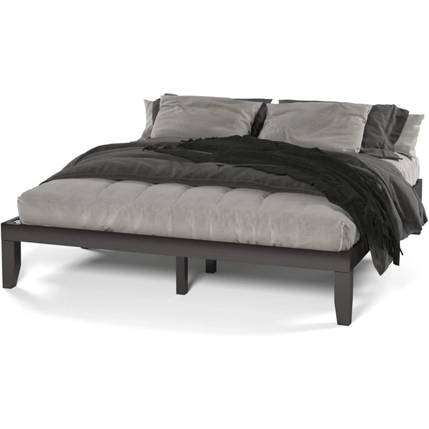 14 Inch Solid Wood Platform Bed Frame, King Size, Dark Brown, No Box Spring Needed, Easy Assembly