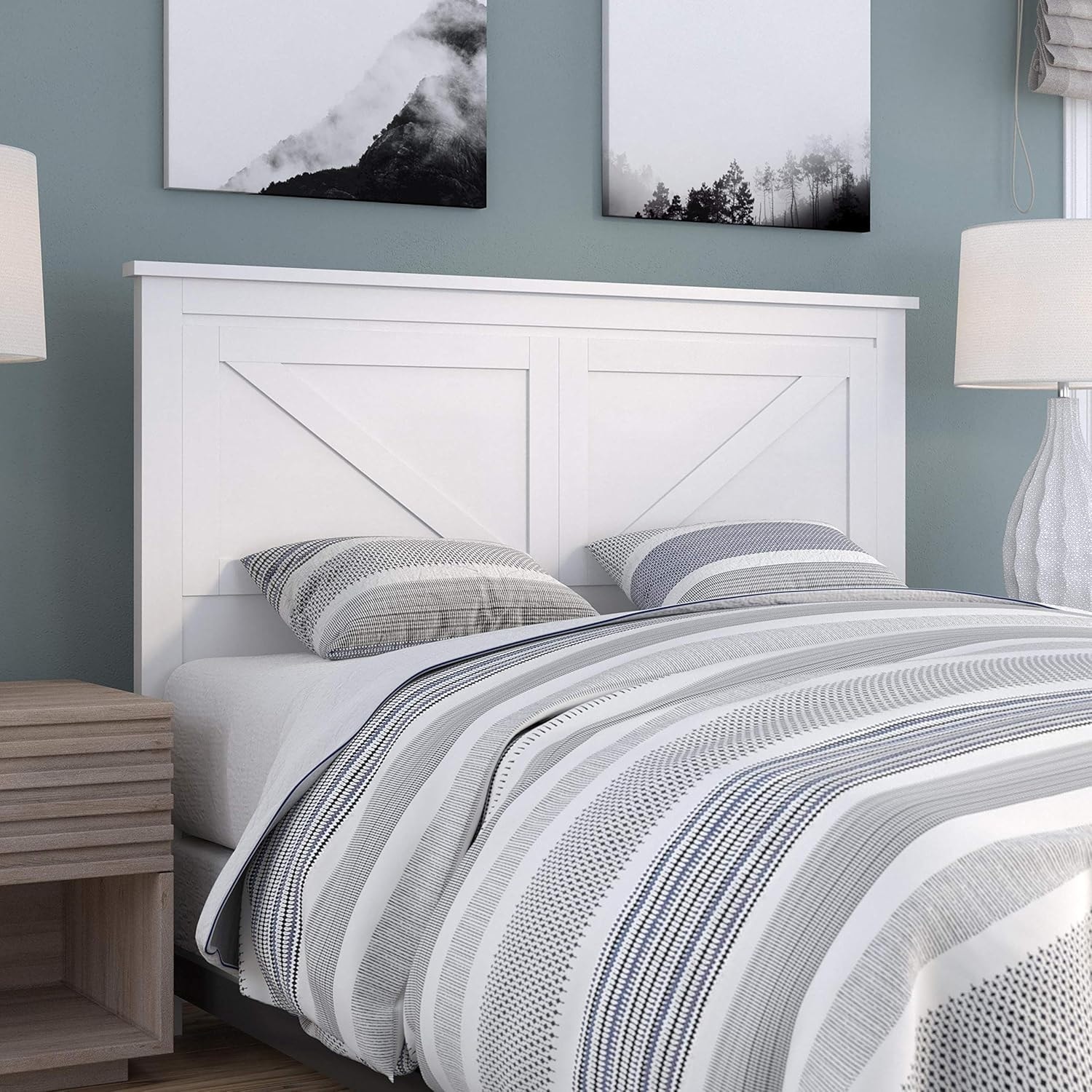 Farmhouse Style Wood Panel Headboard in Gloss White - Full Size