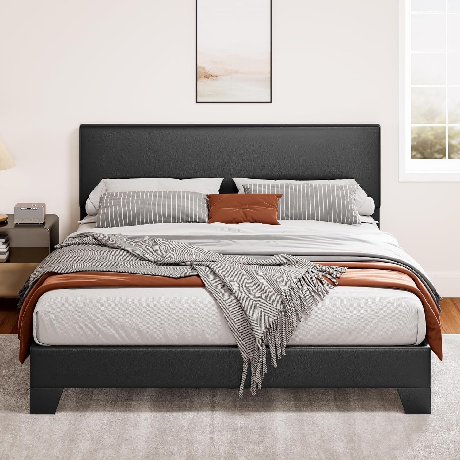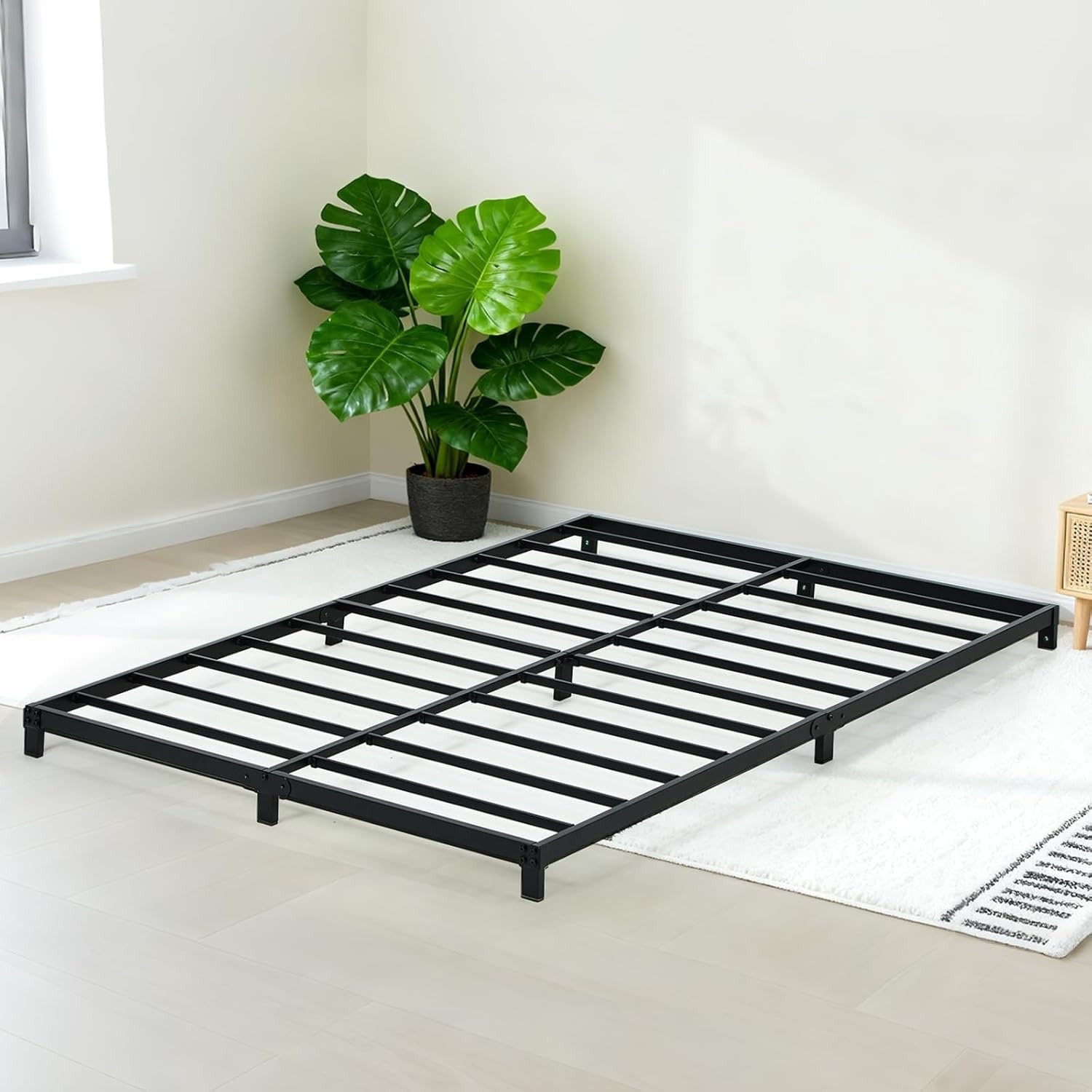 Low Profile Queen Size Metal Bed Frame, Heavy Duty, No Box Spring Needed, Easy Assembly, Noise-Free, Black