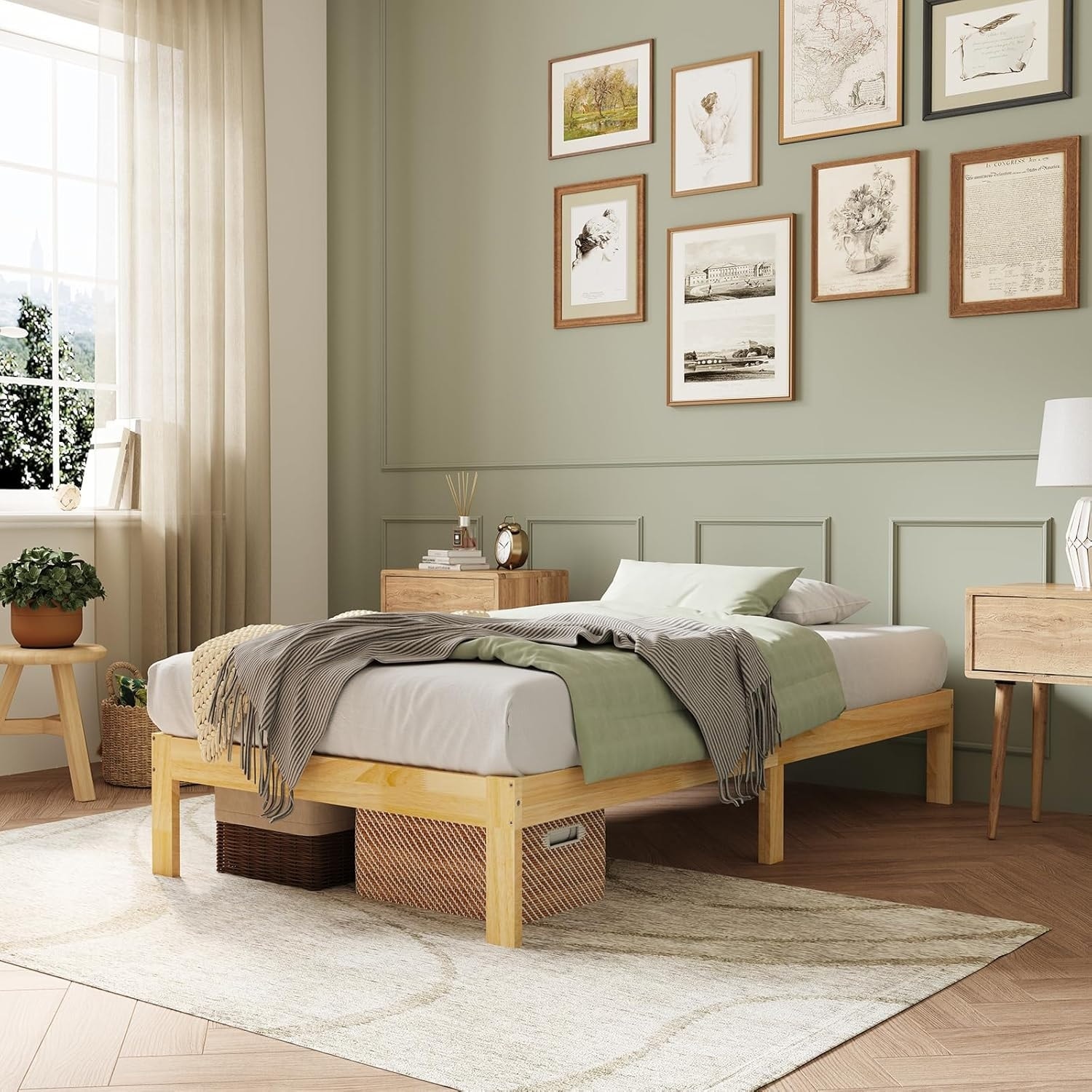 12 Inch Solid Wood Twin Bed Frame with Sturdy Slat Support, Easy Assembly, Underbed Storage, Natural Grain Design