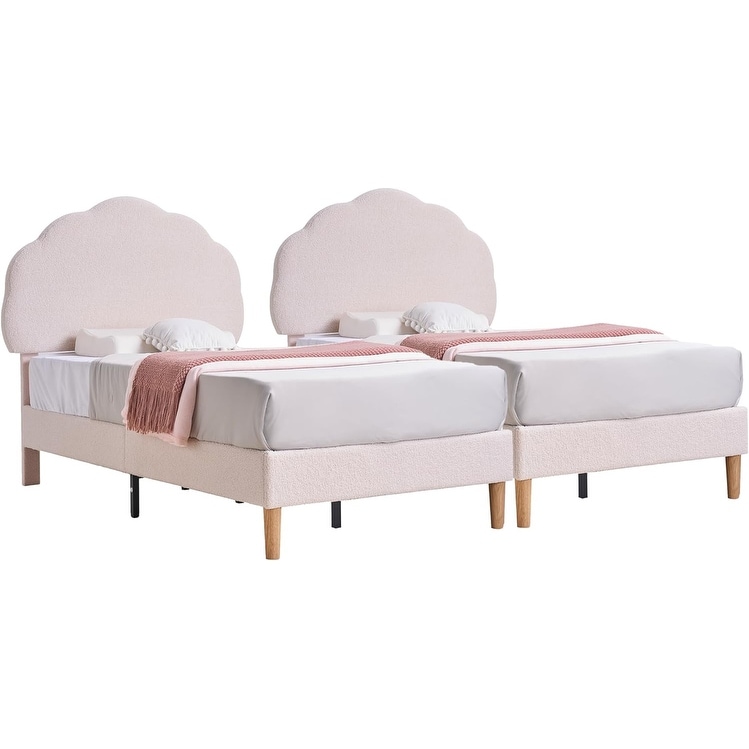 Full/Queen Size Wood Platform Bed Frame with Fluffy Headboard