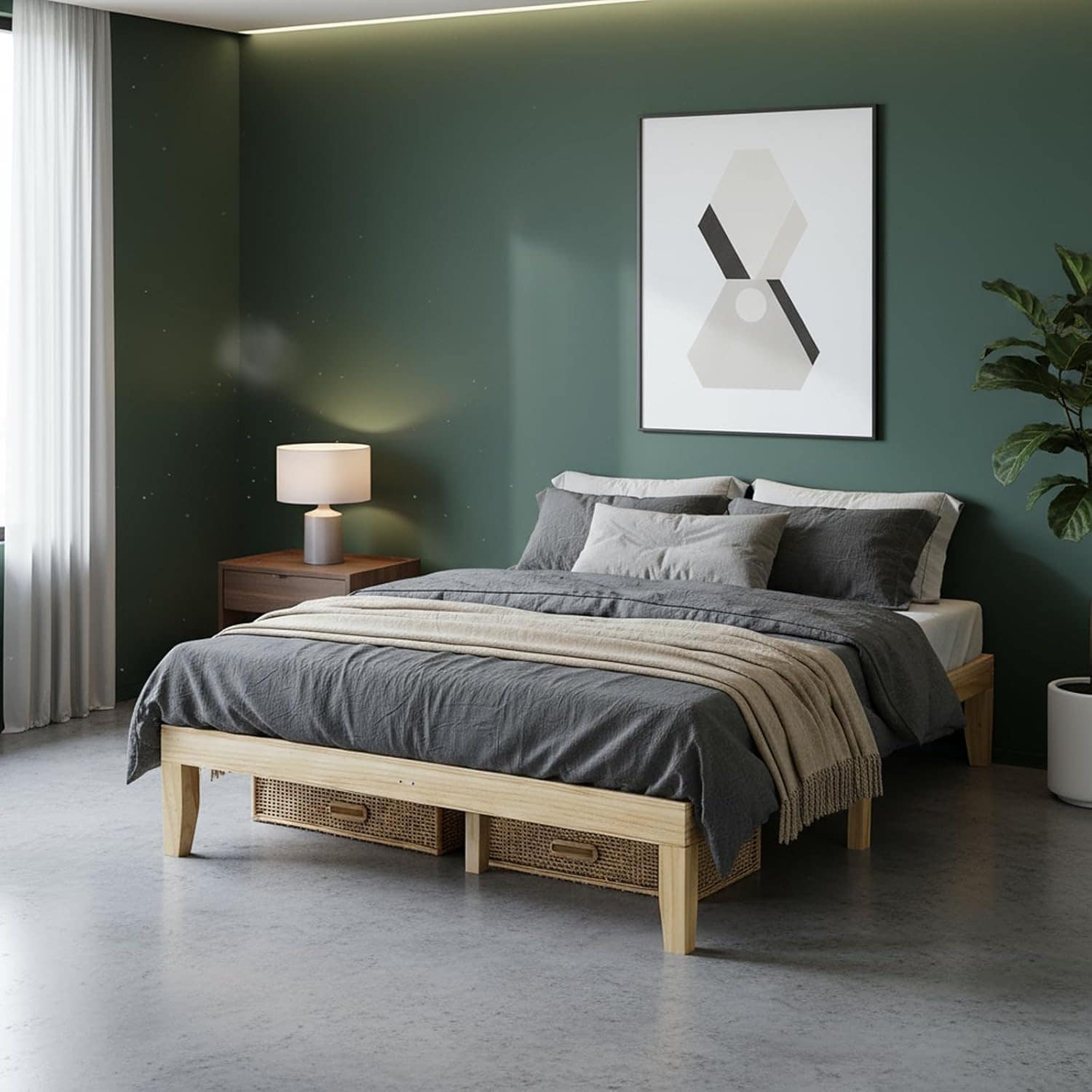 King Size Platform Bed Frame, 14 Inches Solid Wood Mattress Foundation with Sturdy Slats, Easy Assembly, No Box Spring Needed