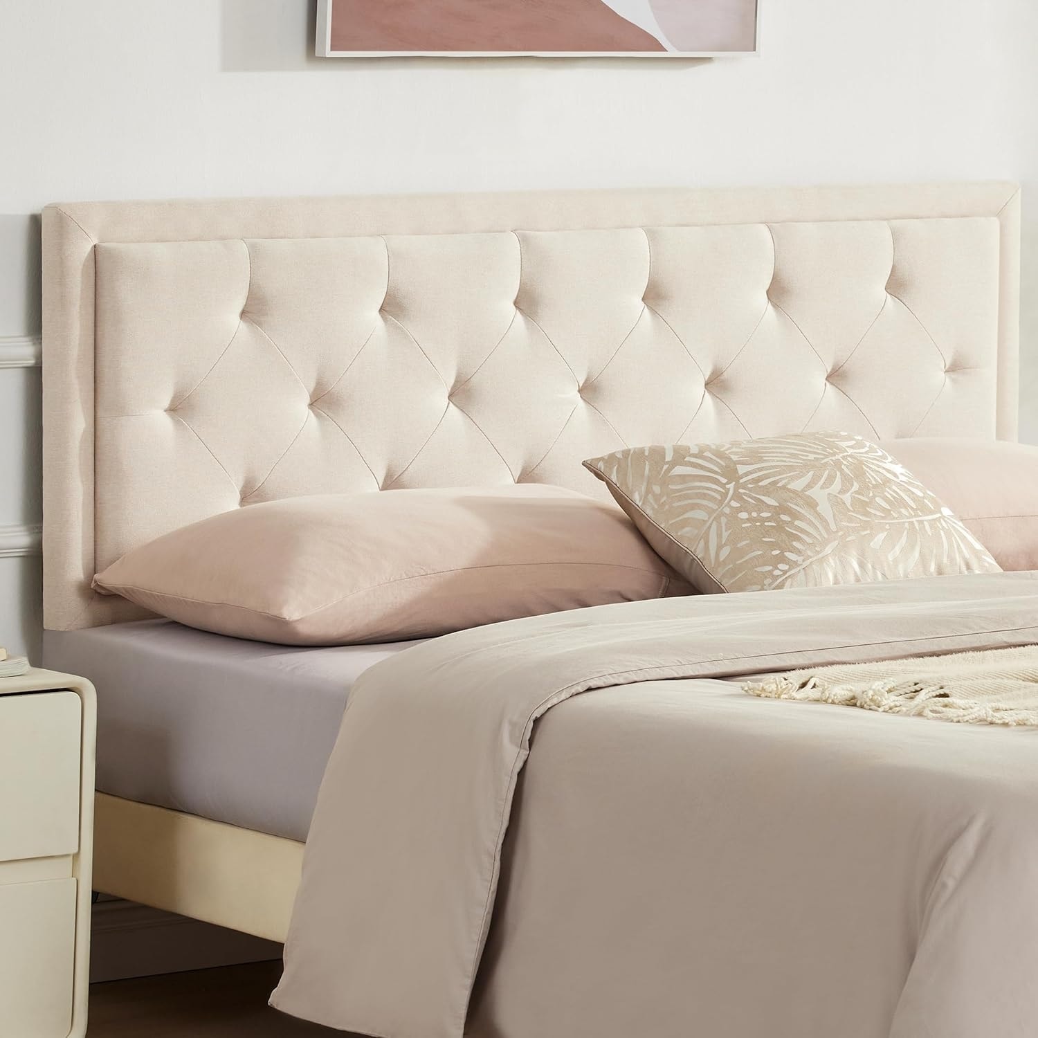 Adjustable Tufted Linen Twin Headboard with Metal Legs, Beige