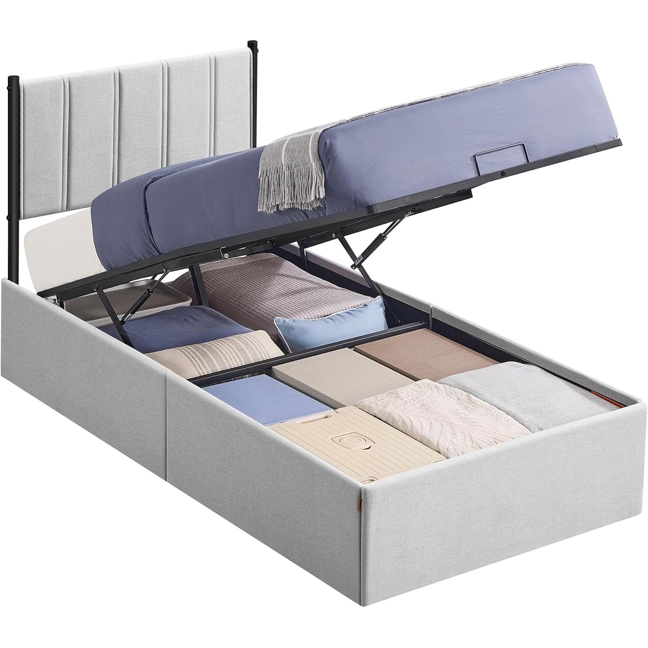 Twin Size Hydraulic Lift-Up Storage Bed Frame with Upholstered Headboard, 550 lb Capacity, Easy Assembly, Dove Gray
