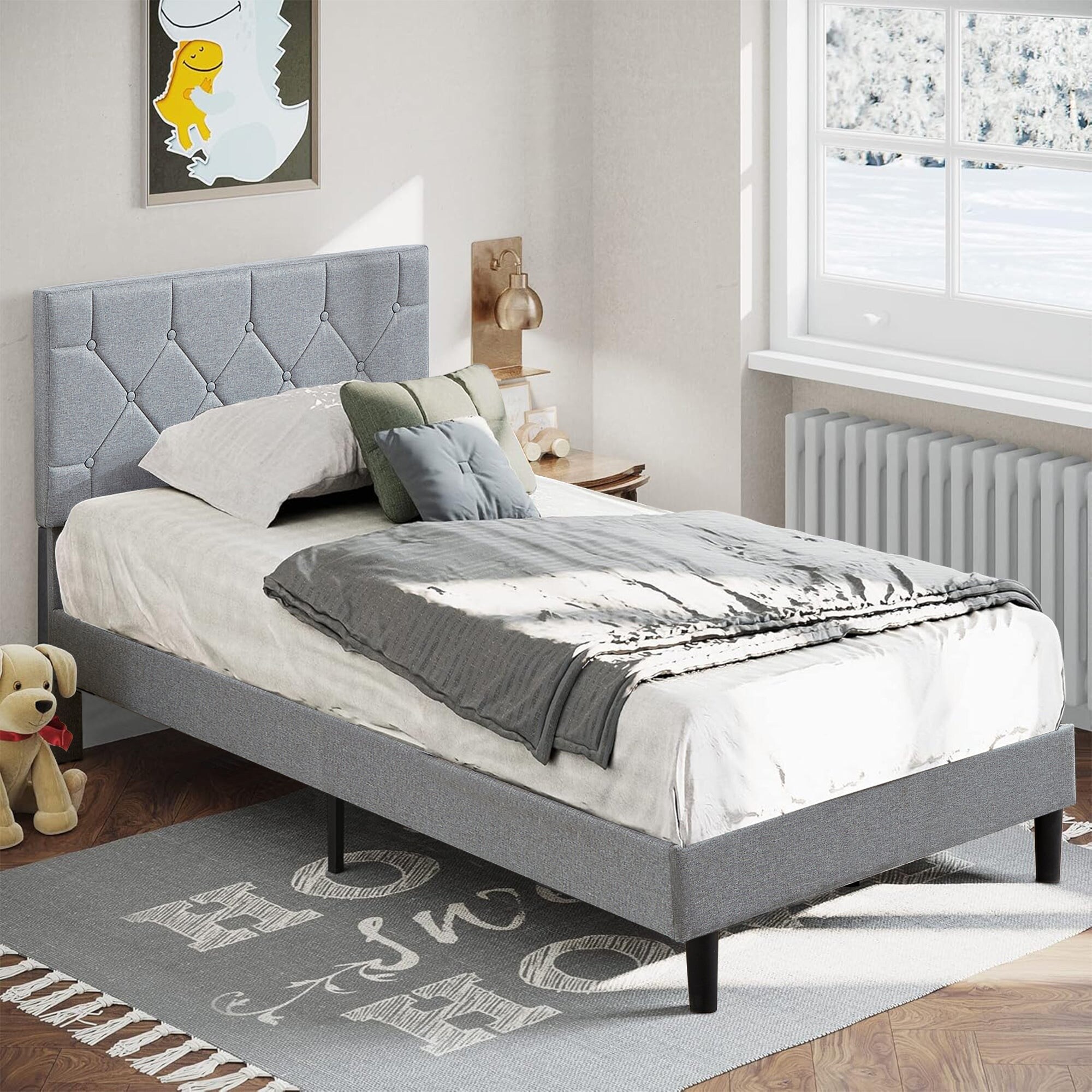 Javlergo Upholstered Beds With Diamond Tufted Headboard, Platform Bed Frame,
