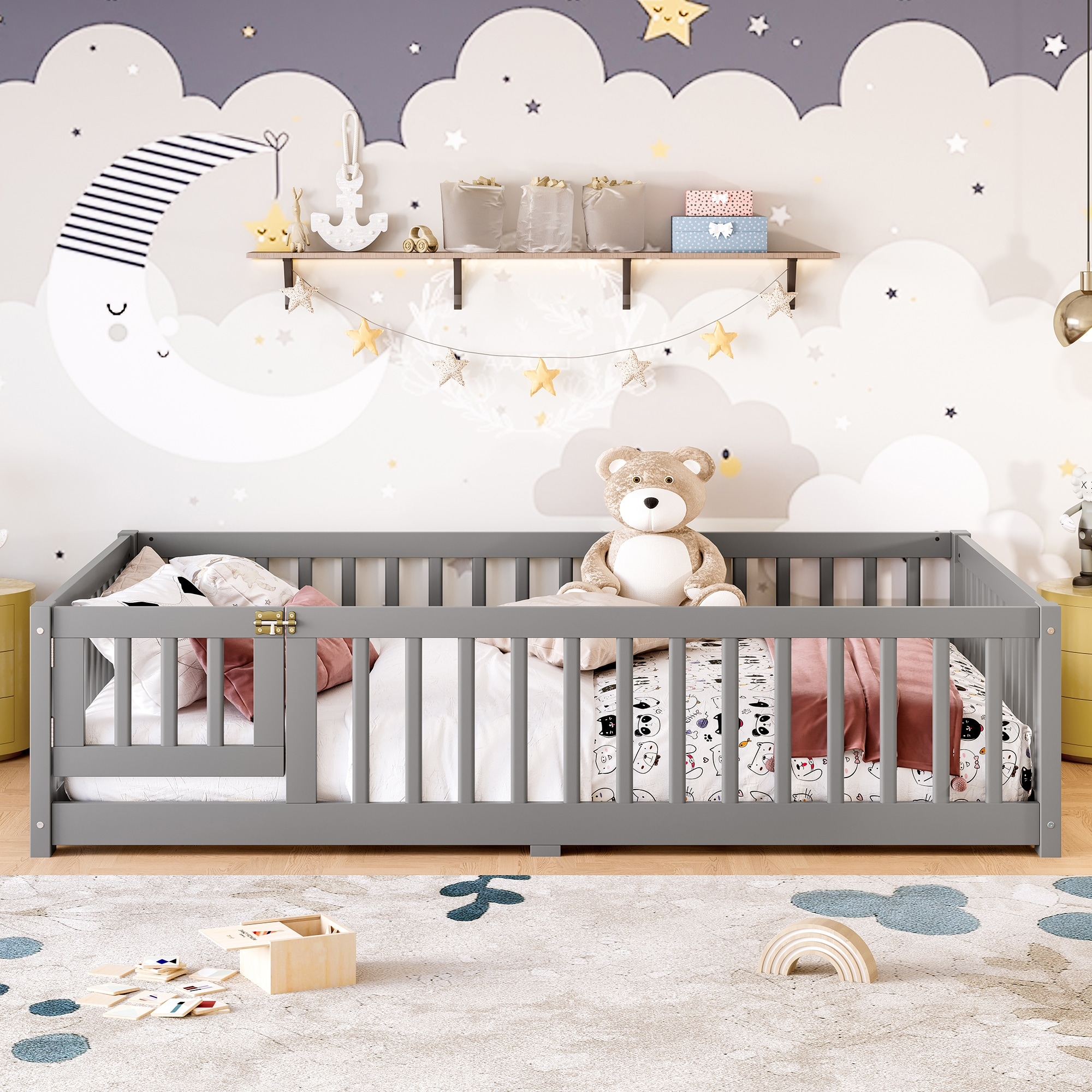 Twin/Full/Queen/Twin XLSize Bed Floor Bed with Safety Guardrails and Door for Kids
