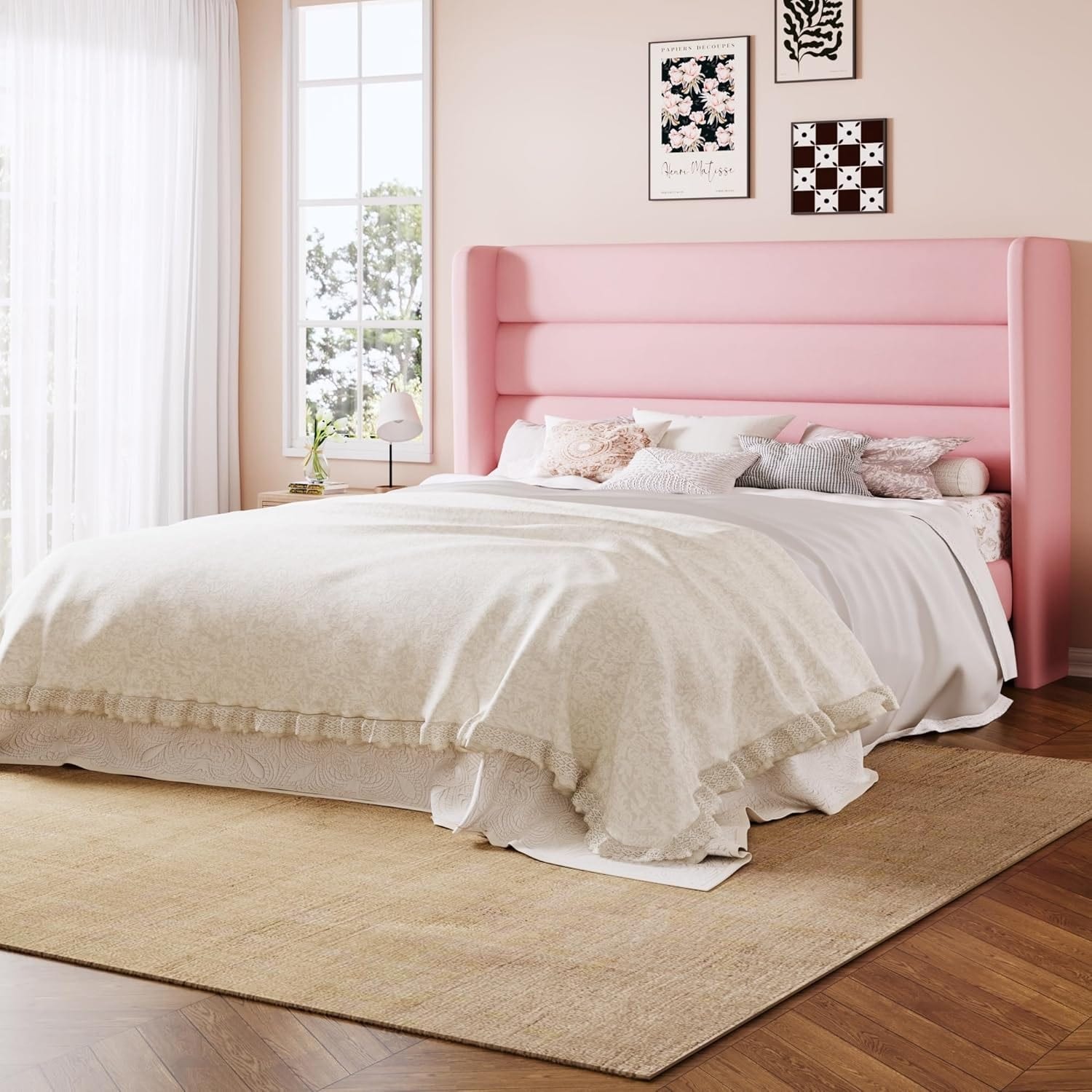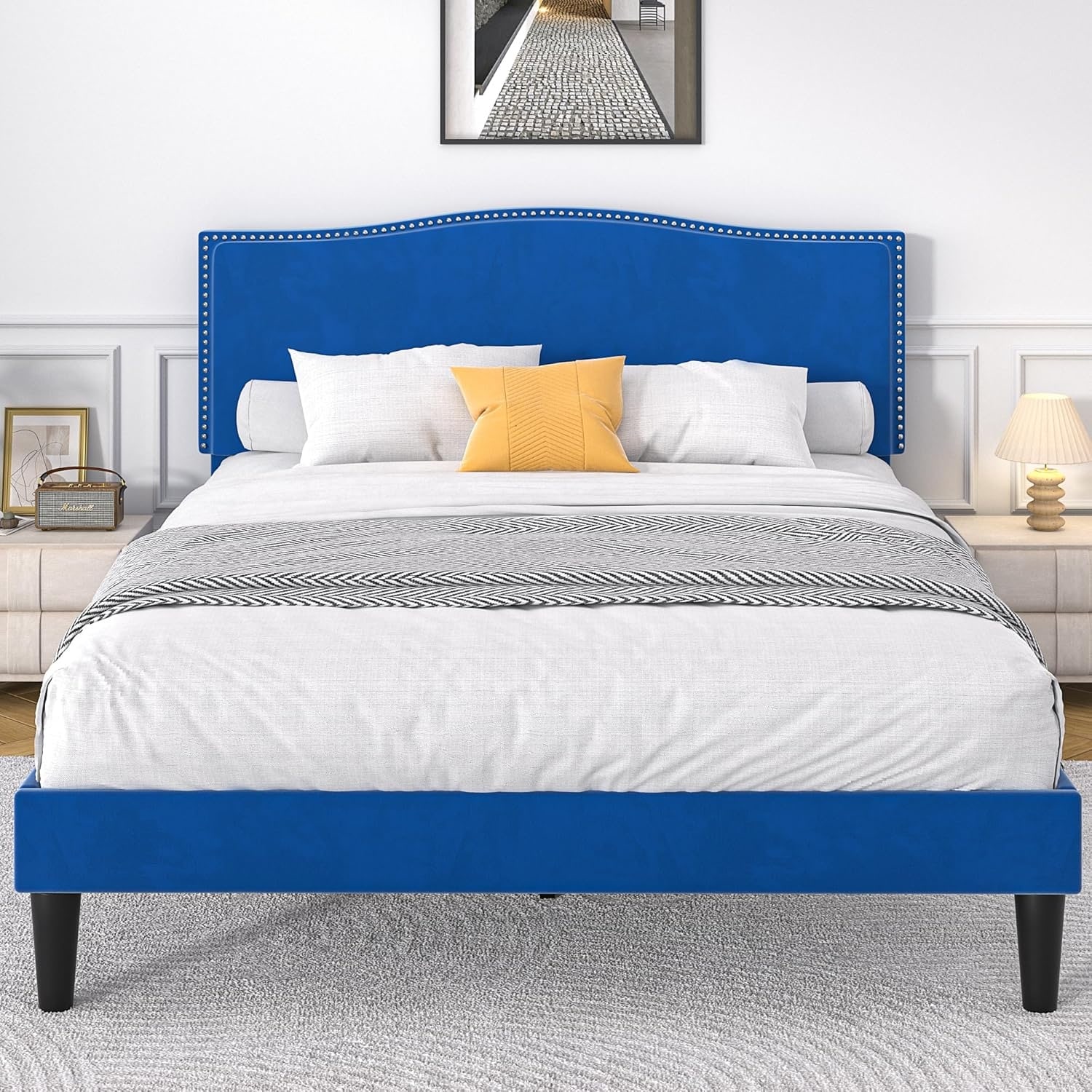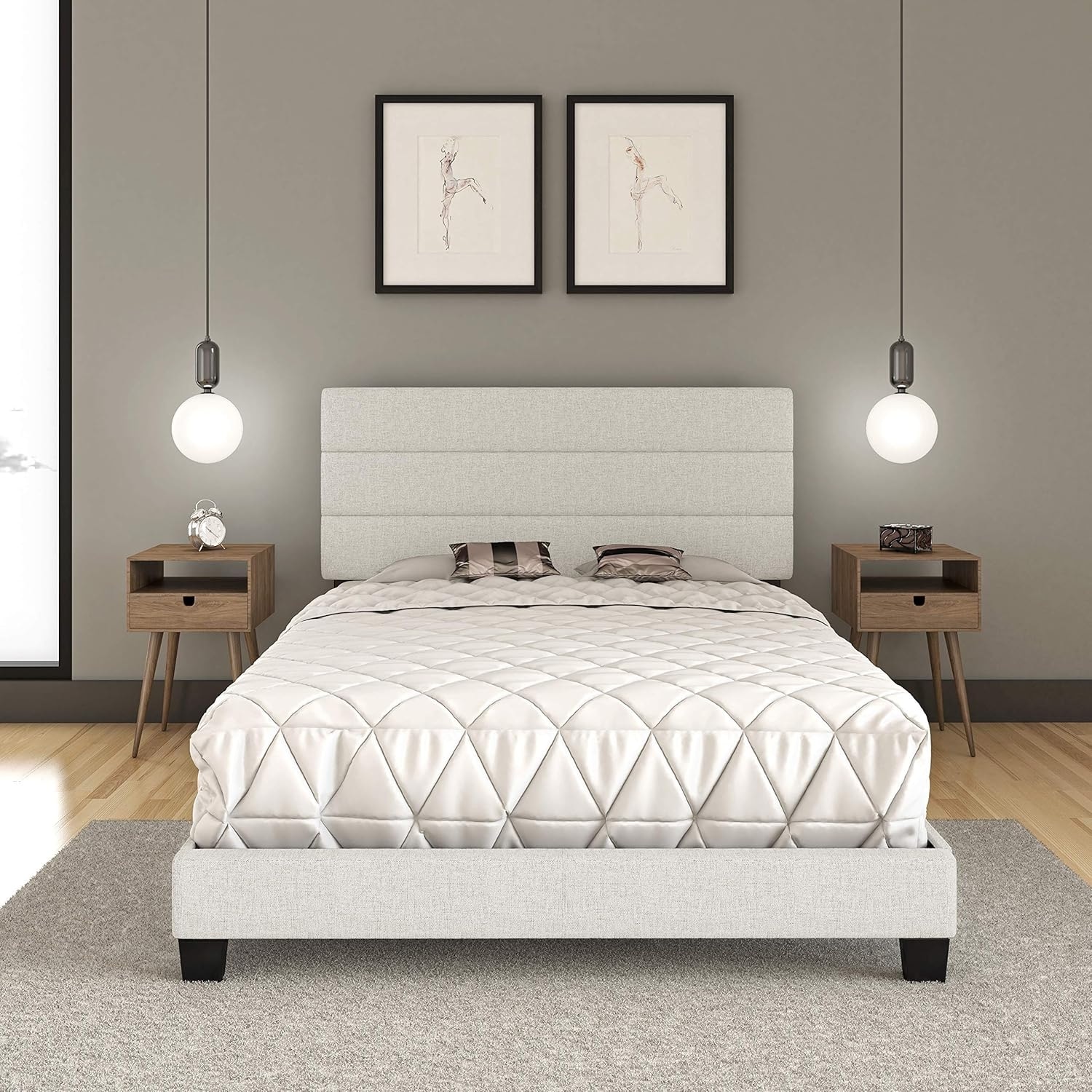 Queen Size Linen Upholstered Platform Bed Frame with Adjustable Headboard