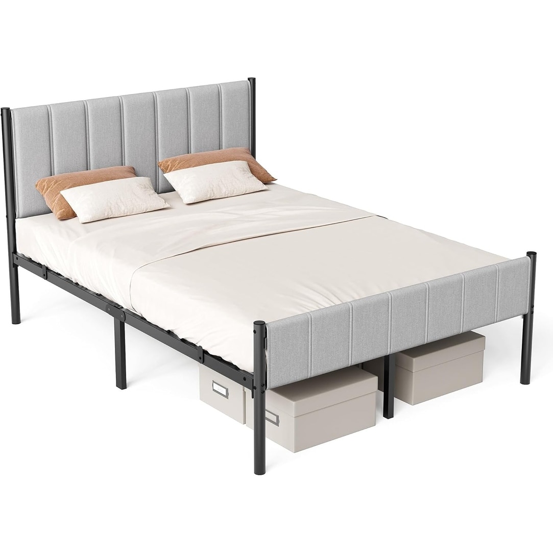 Full Size Upholstered Bed Frame with Headboard, Sturdy Steel Frame, 1100 lb Capacity, Noise-Free Design, Easy Assembly, Gray