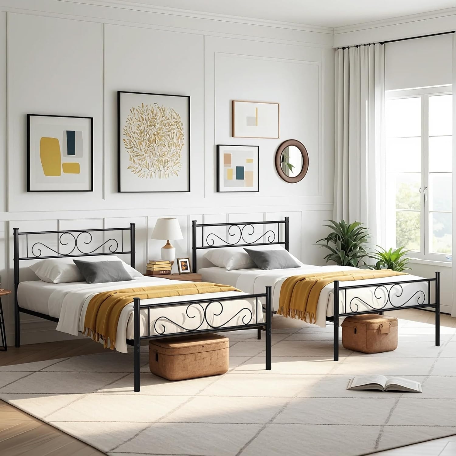 Twin Size Metal Bed Frame with Headboard, 14 Inch Platform, Easy Assembly, Under-Bed Storage, Matte Black