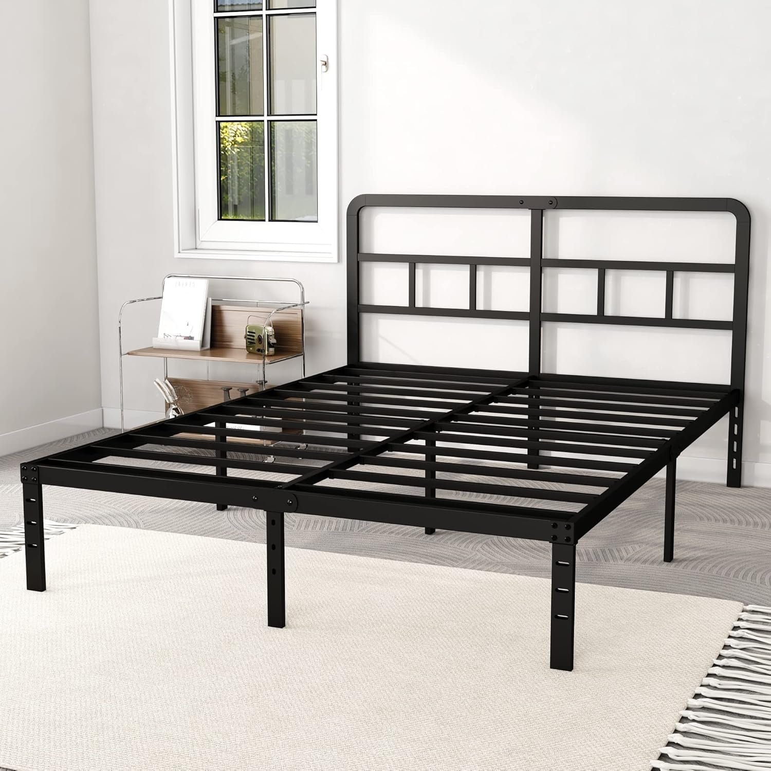 14 Inch Full Size Metal Bed Frame with Headboard, Easy Assembly, No Box Spring Needed, Noise Free, Black