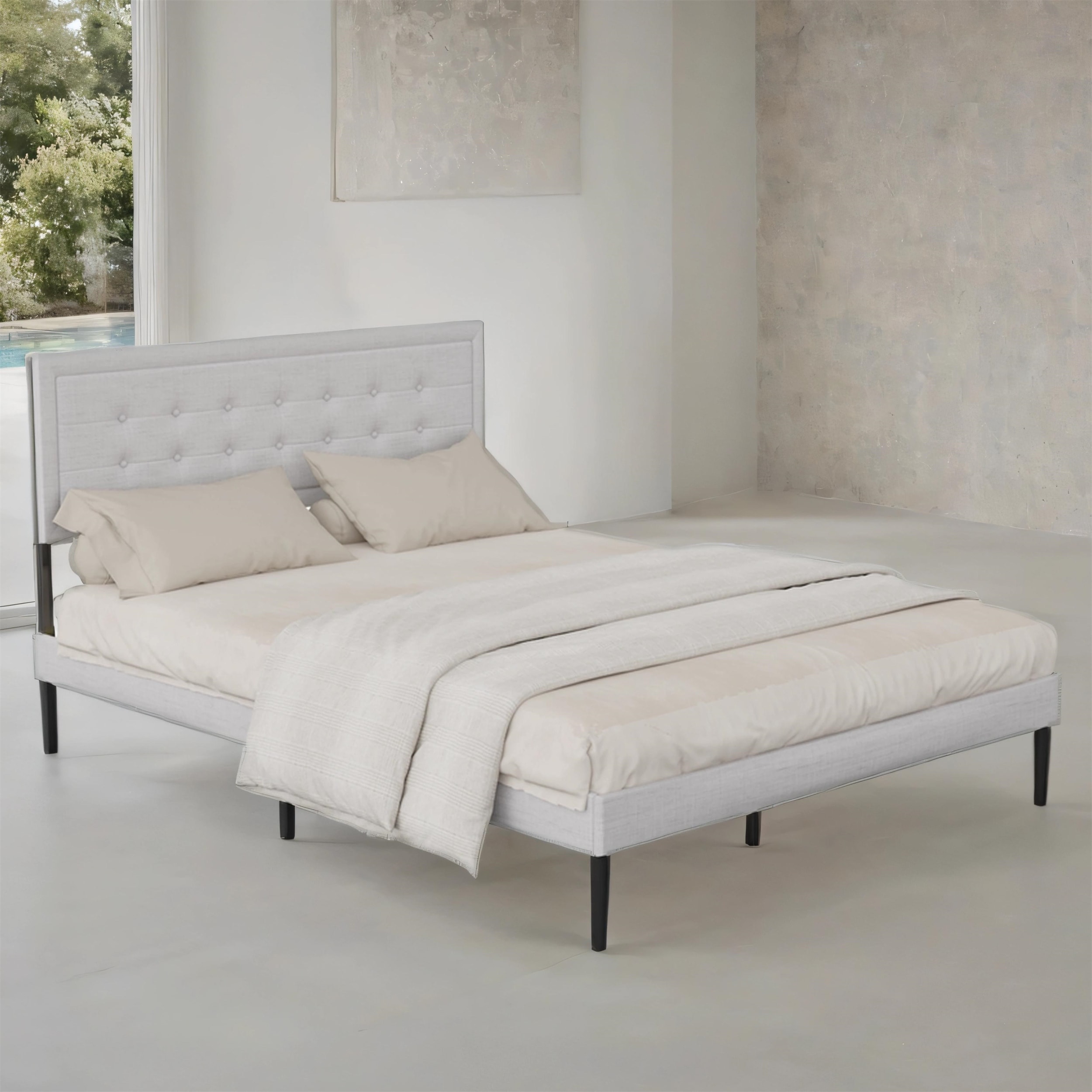 Queen Size Upholstered Platform Bed with Tufted Headboard, 800 lbs