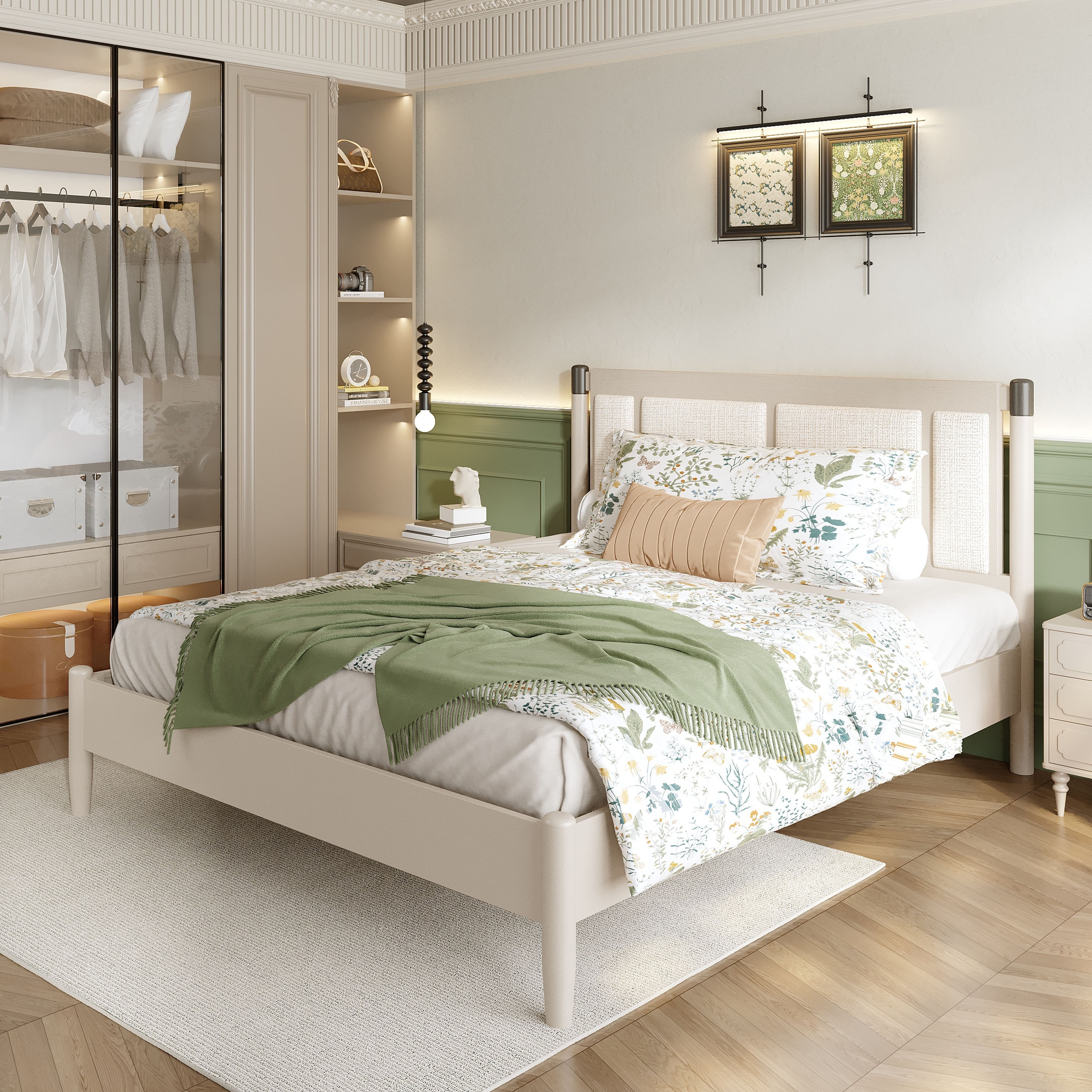 Wood Platform Bed Frame with Headboard, Noise-Free