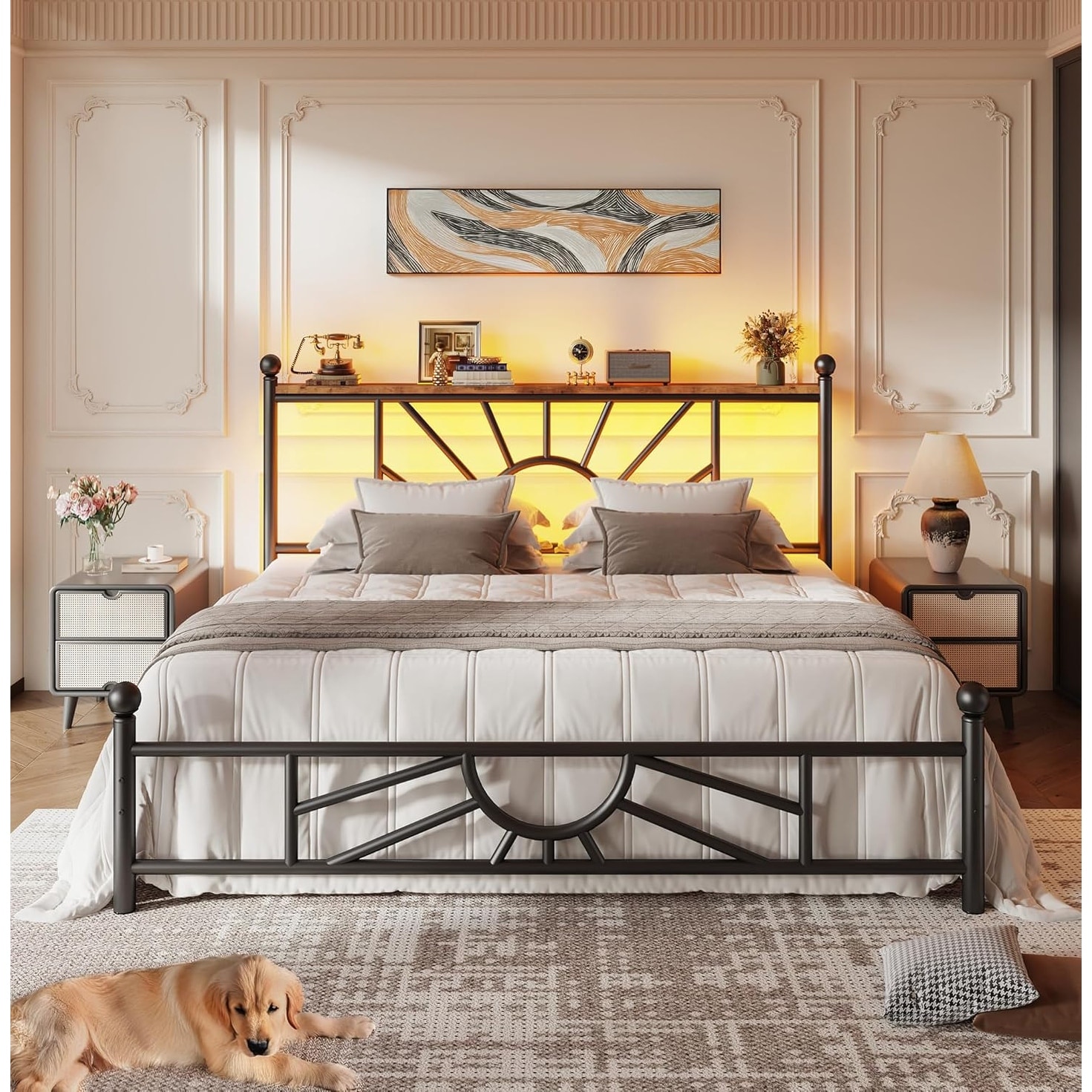 Queen Metal Platform Bed with LED Headboard, Under Bed Storage, Noise-Free, Easy Assembly, Black