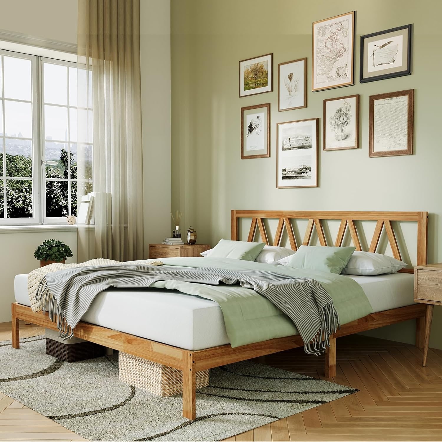 Cielle French Bohemian Wood Platform Bed Frame