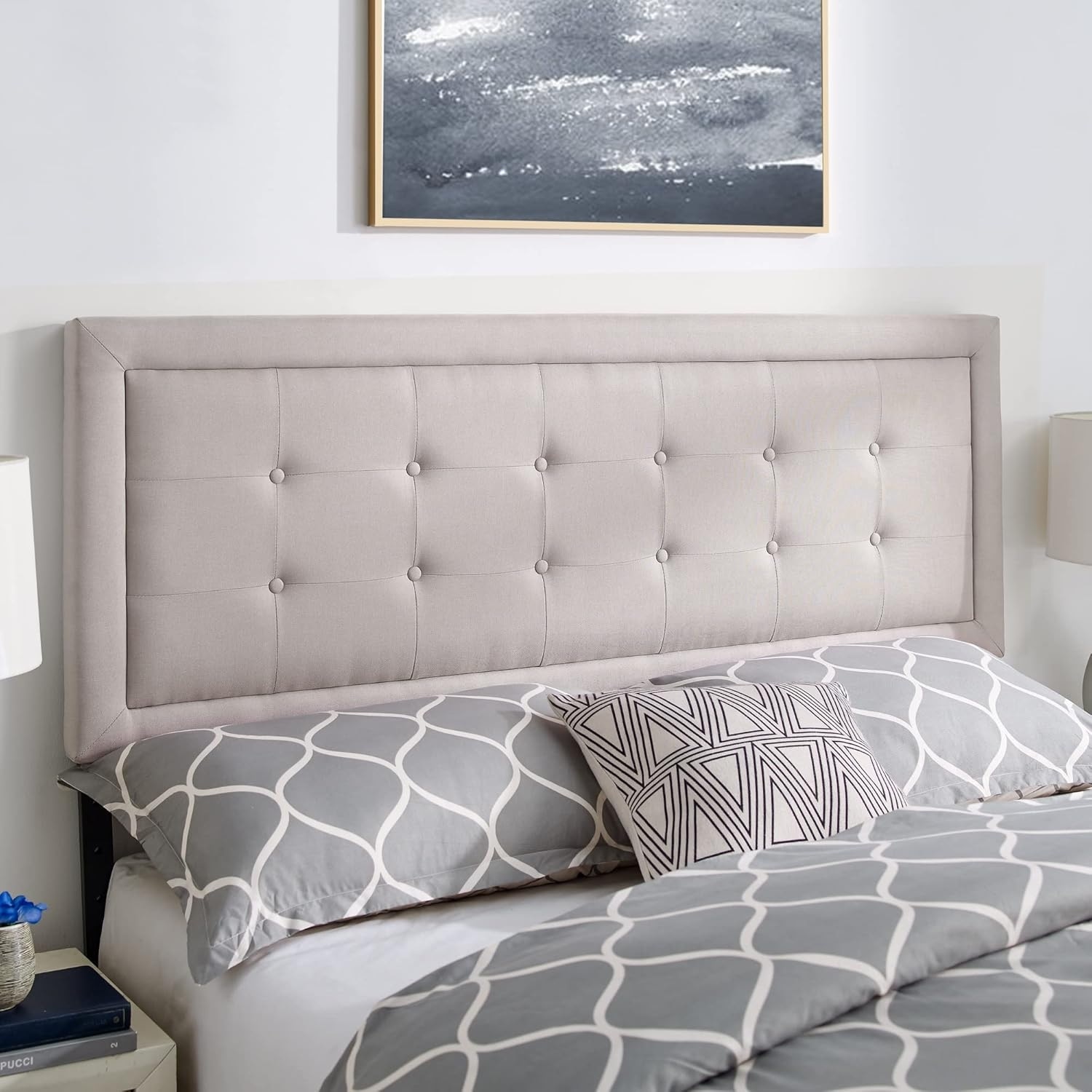 Full Tufted Upholstered Headboard in Beige