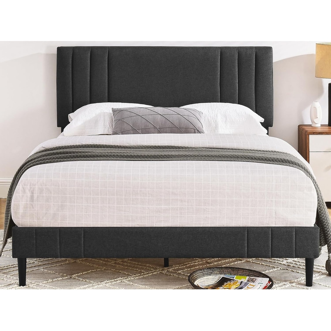 Modern Tufted Upholstered Platform Full Size Bed Frame in Dark Grey