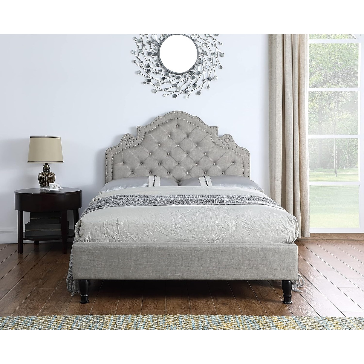 Full Upholstered Platform Bed Frame with Tall Headboard, Wood Slat Support, Storage Space, No Box Spring Needed, Light Grey