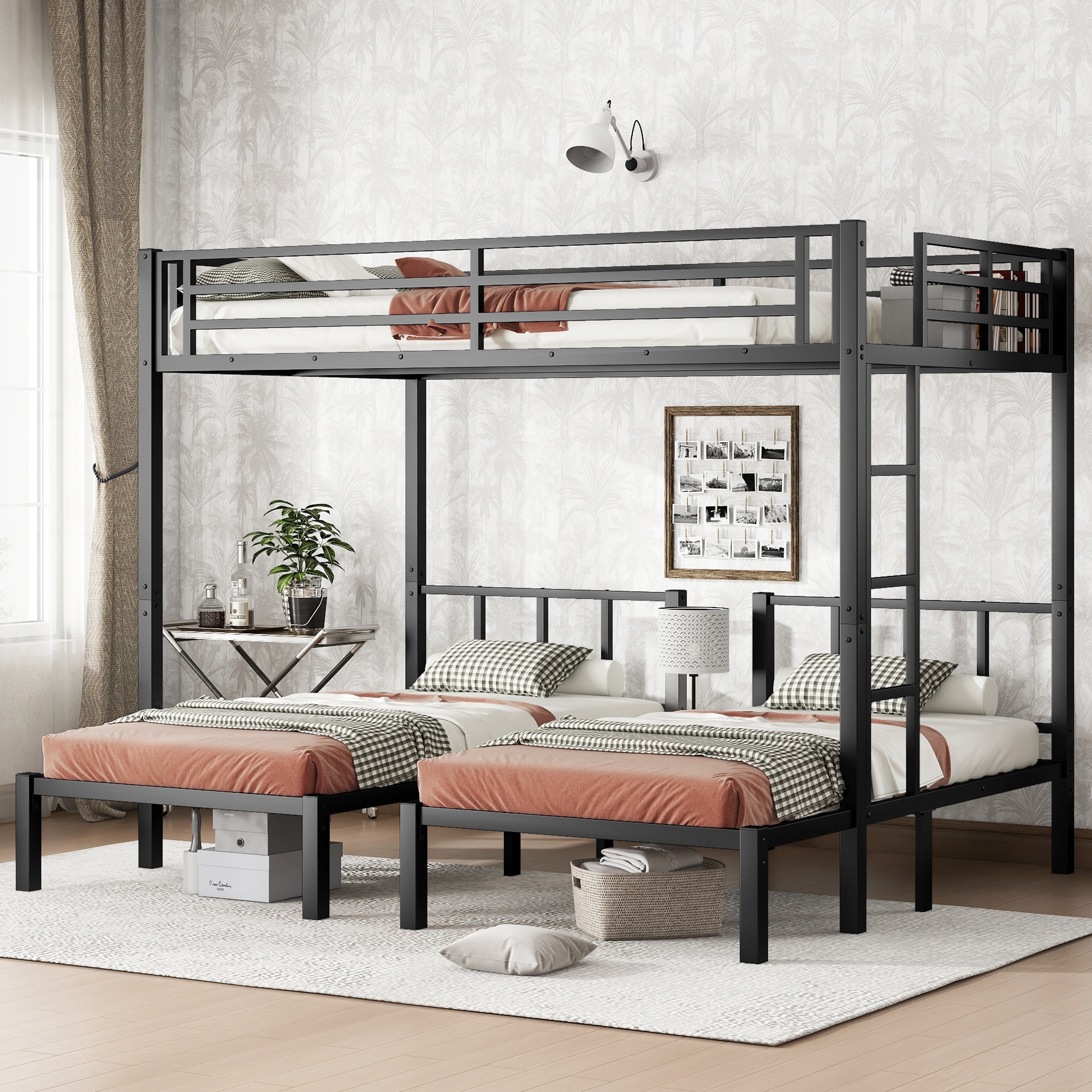 Twin over Twin & Queen Bunk Bed, Metal Triple Bunk Bed with Safety Guardrails