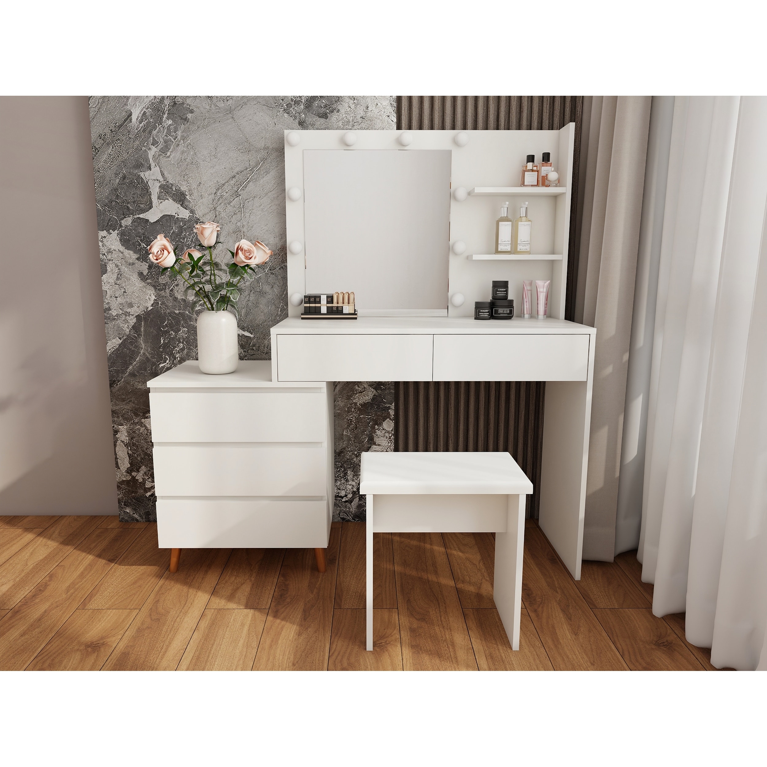 Vanity Dresser with Mirror and Stool Set Storage Drawers Luxury Furniture