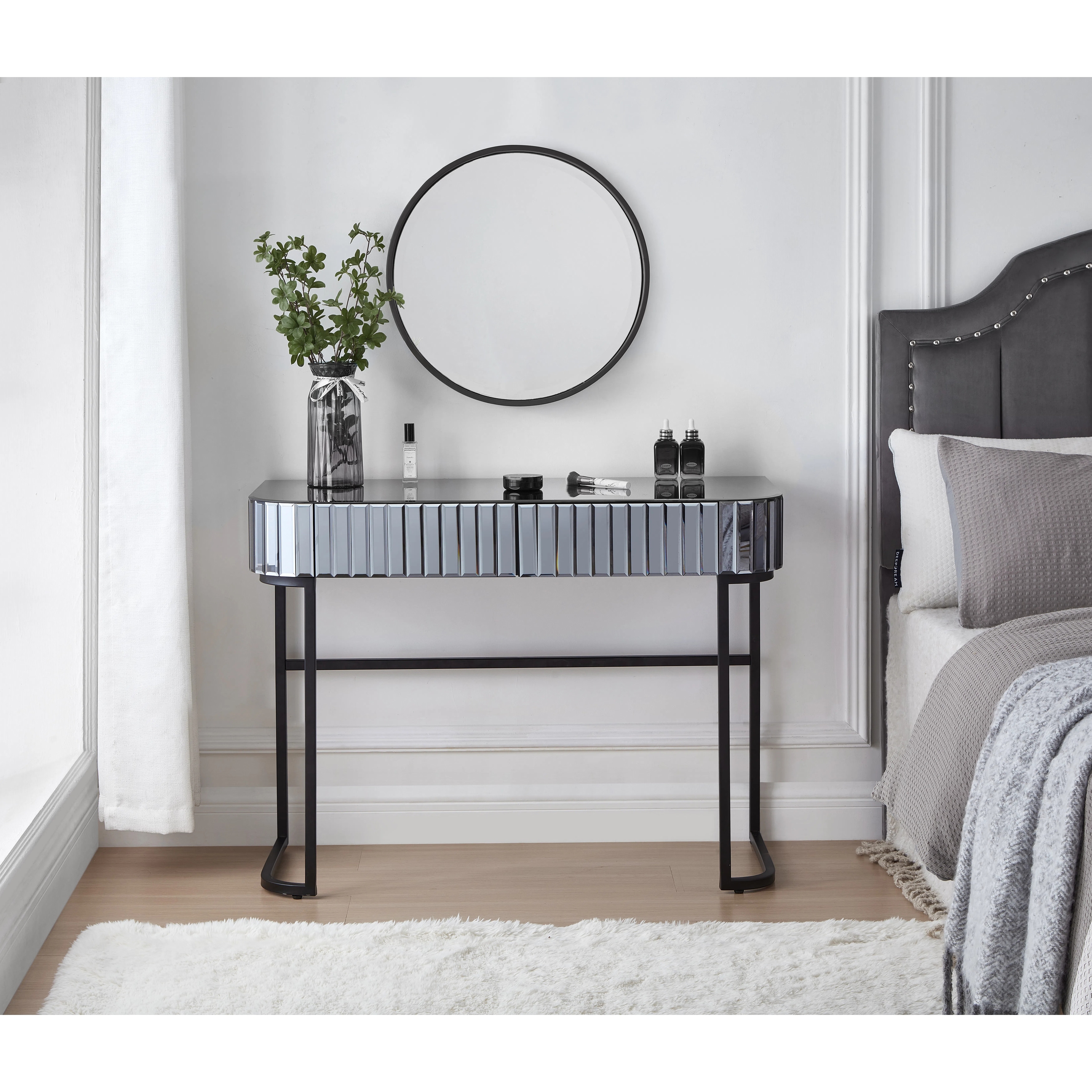 Vanity Table Mirror Modern Dressing Desk with Drawers Cushioned Stool