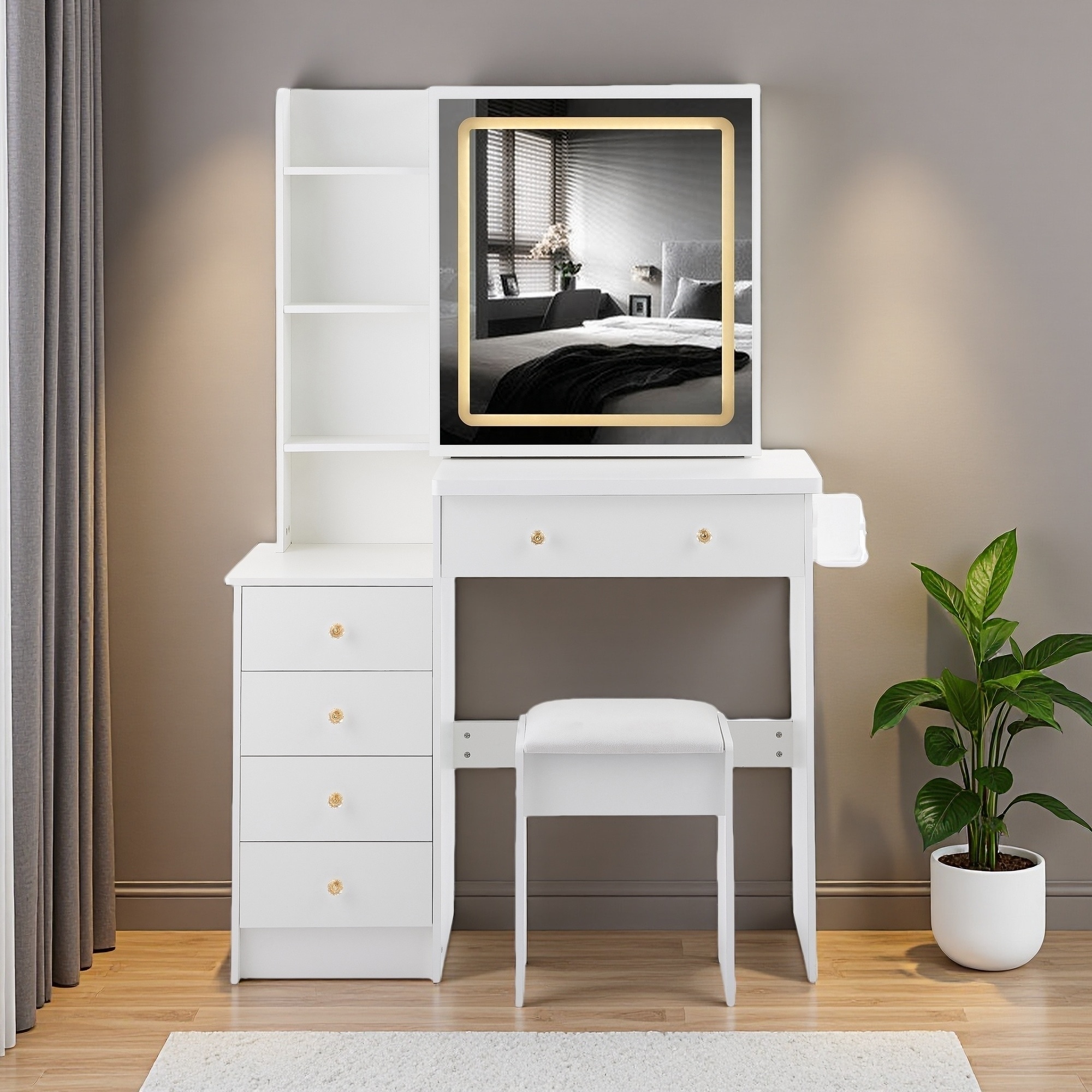 Vanity Dresser with Mirror and Stool Set Storage Drawers Luxury Furniture