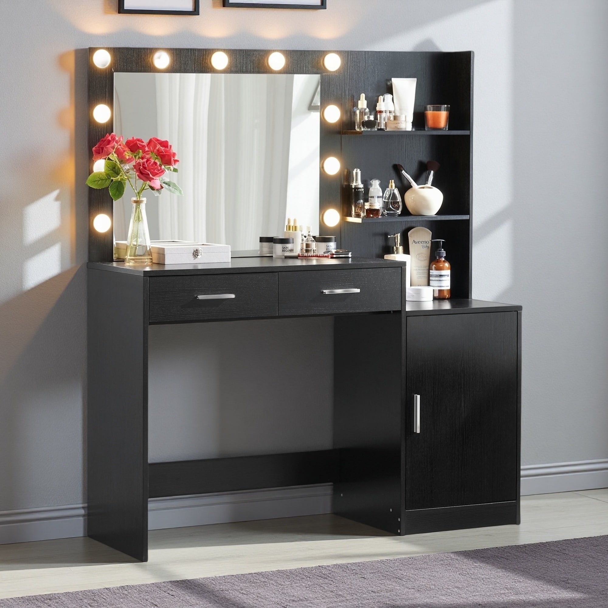 46.7" Makeup Vanity Desk with LED Mirror, 2 Drawers & Storage Organizer