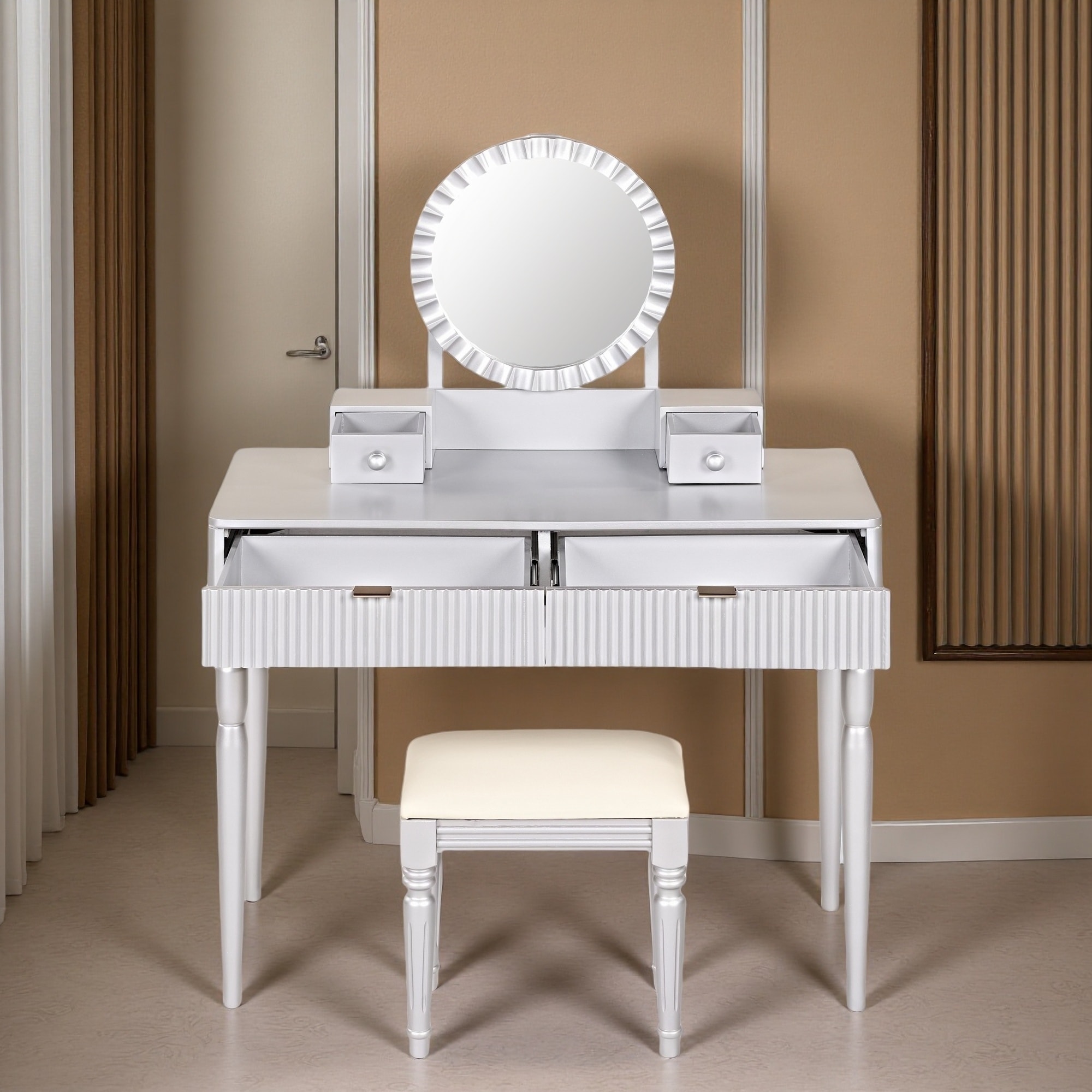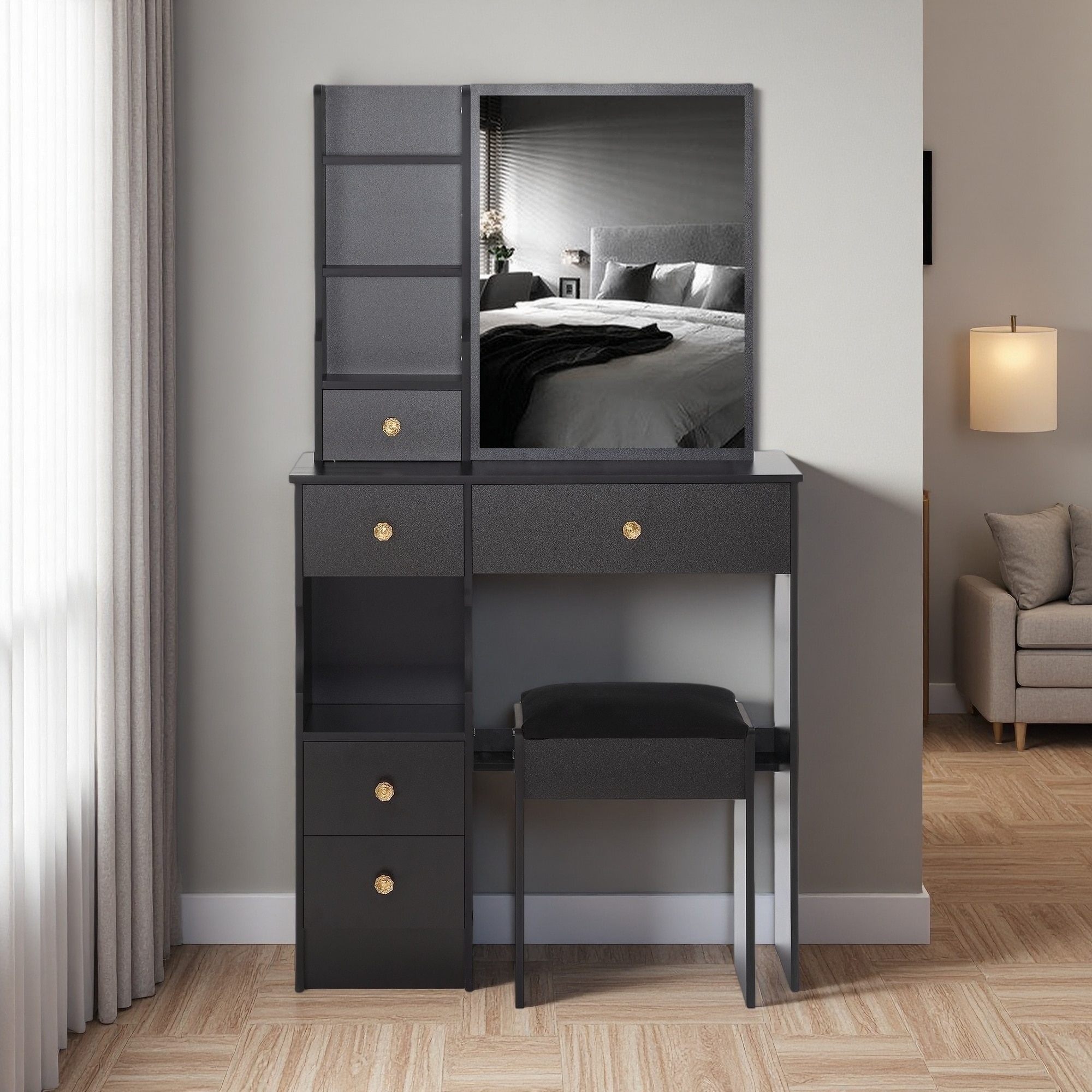 Vanity Dresser with Mirror and Stool Set Storage Drawers Luxury Furniture