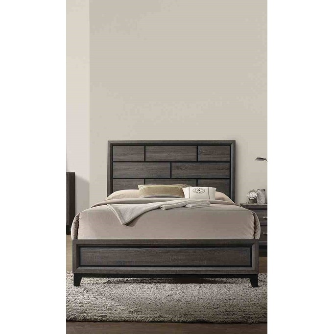 Contemporary Gray Bedroom Furniture Set Panel Bed Dresser Mirror Nightstand