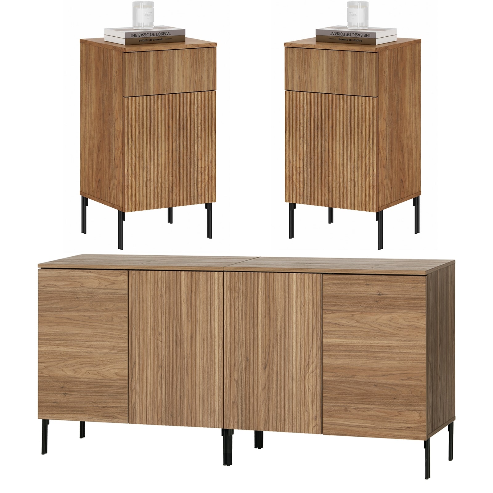 4 Pcs Bedroom Set,Reeded Dresser and Nightstand Sets for Bedroom,Wooden Night Stand of 2 with Charging Station