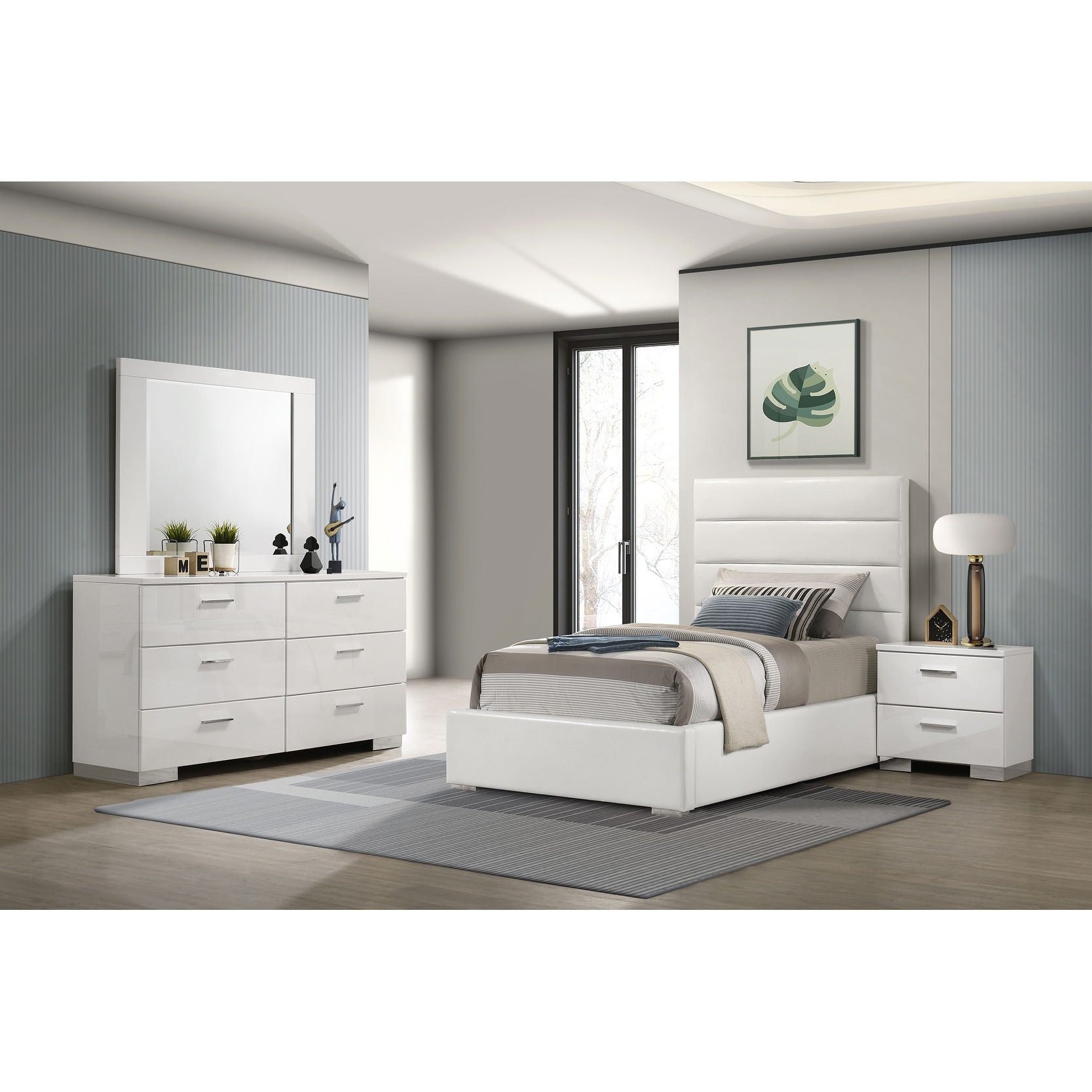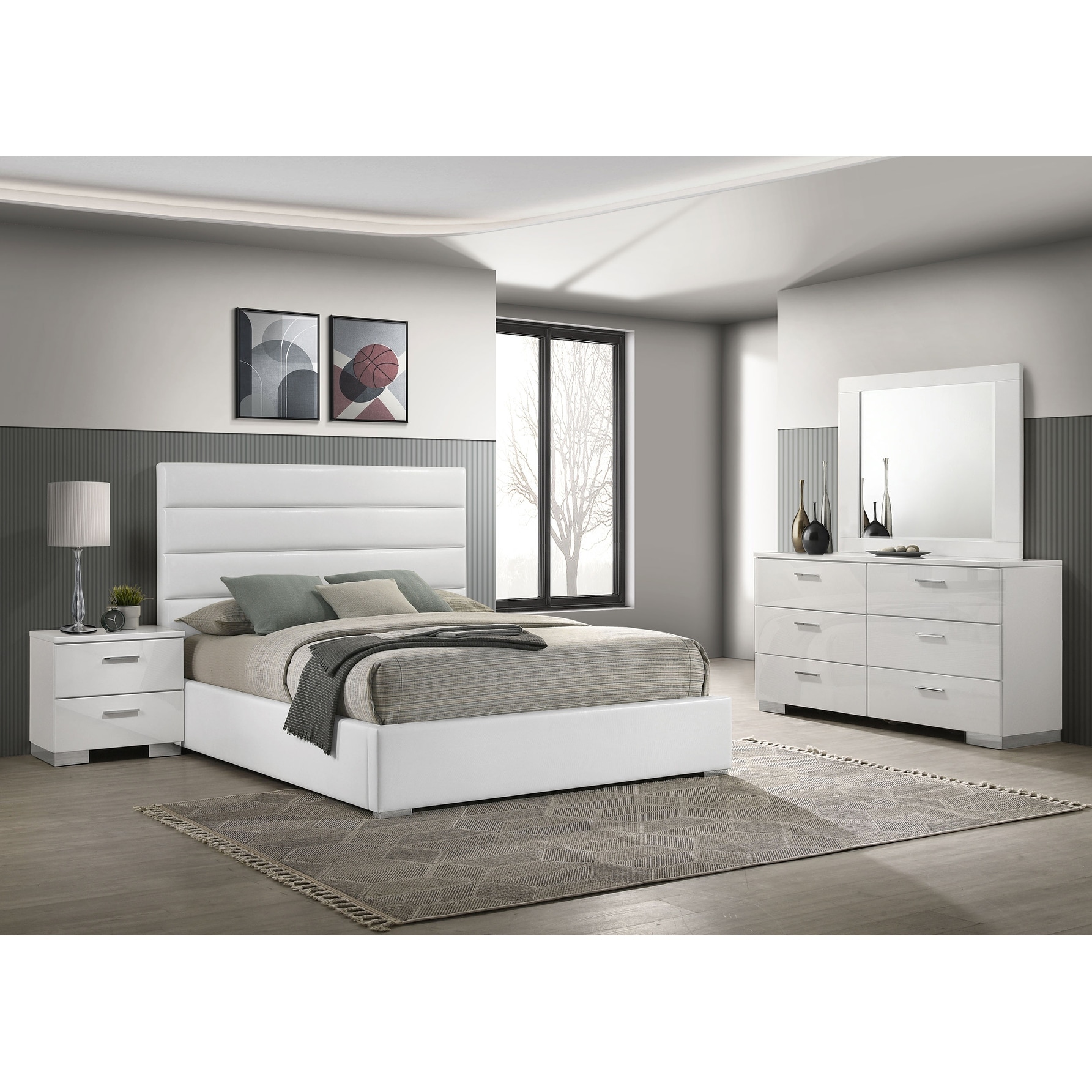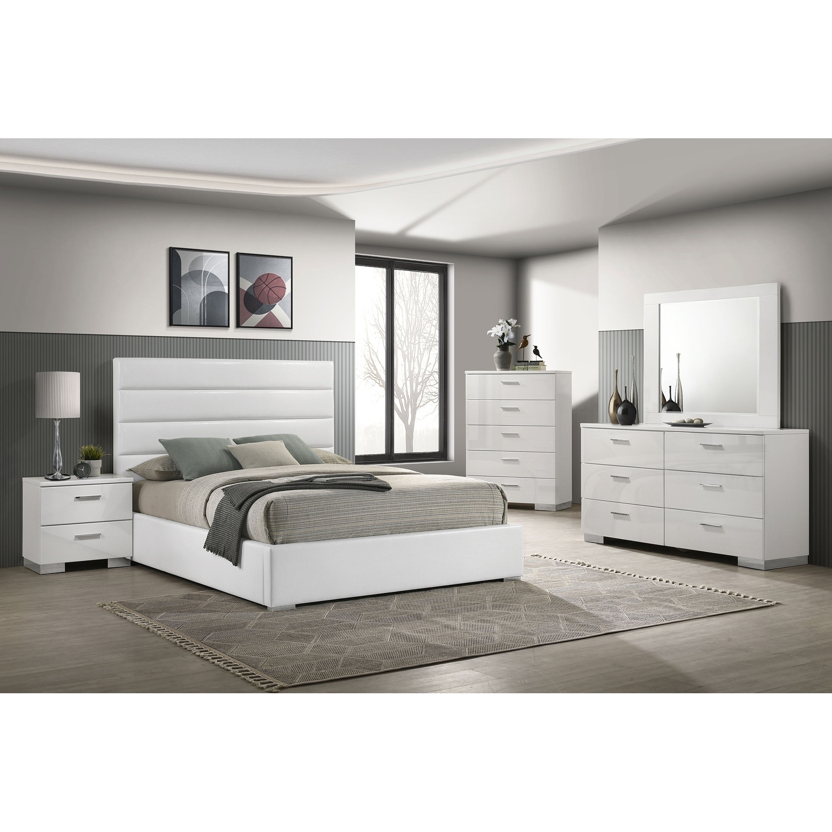 Furniture of America Seraphine Modern 5-Piece Light Grey Panel Bedroom Set with Fluted Headboard