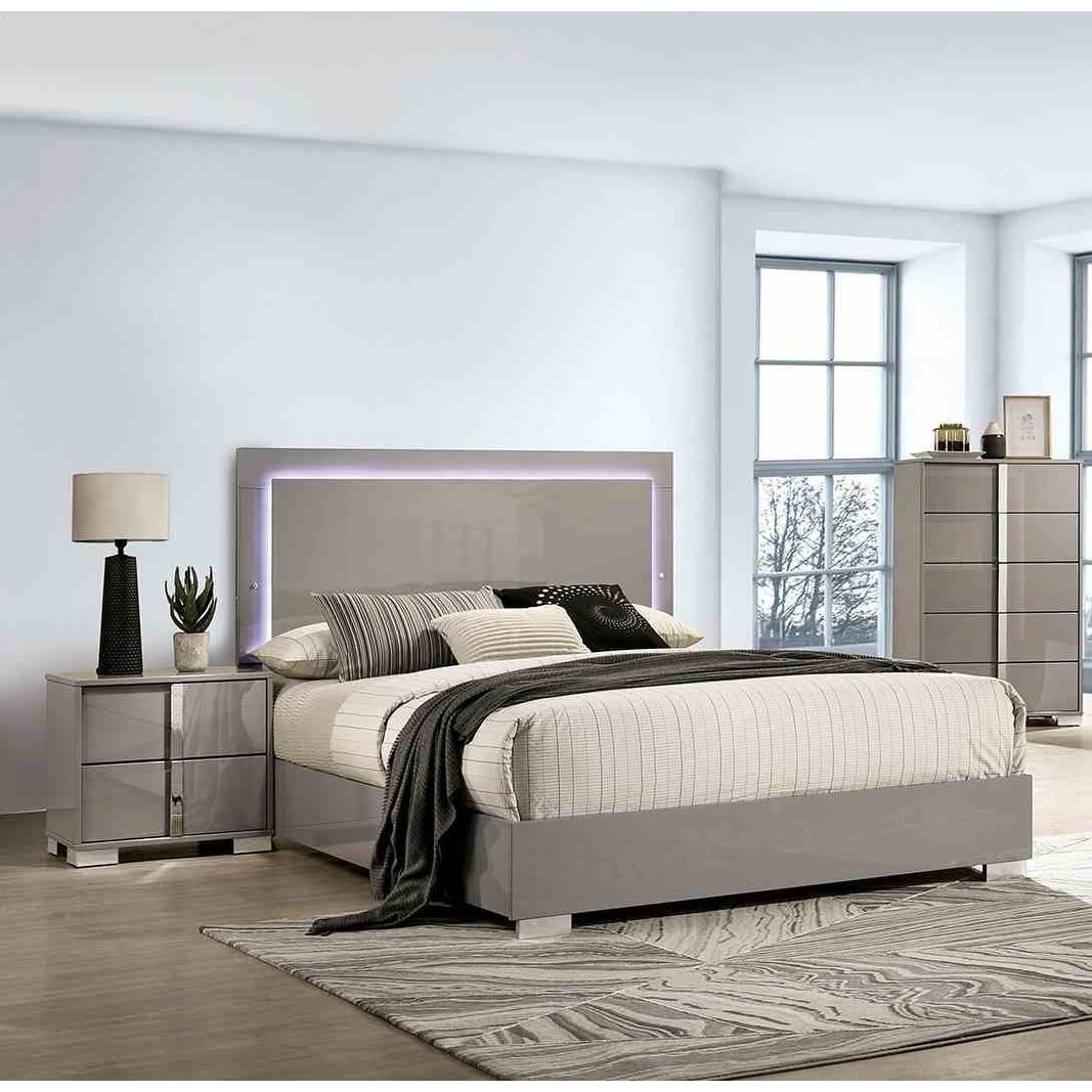 LED Bed Chest Nightstand Contemporary 3pc Taupe Finish Bedroom Set