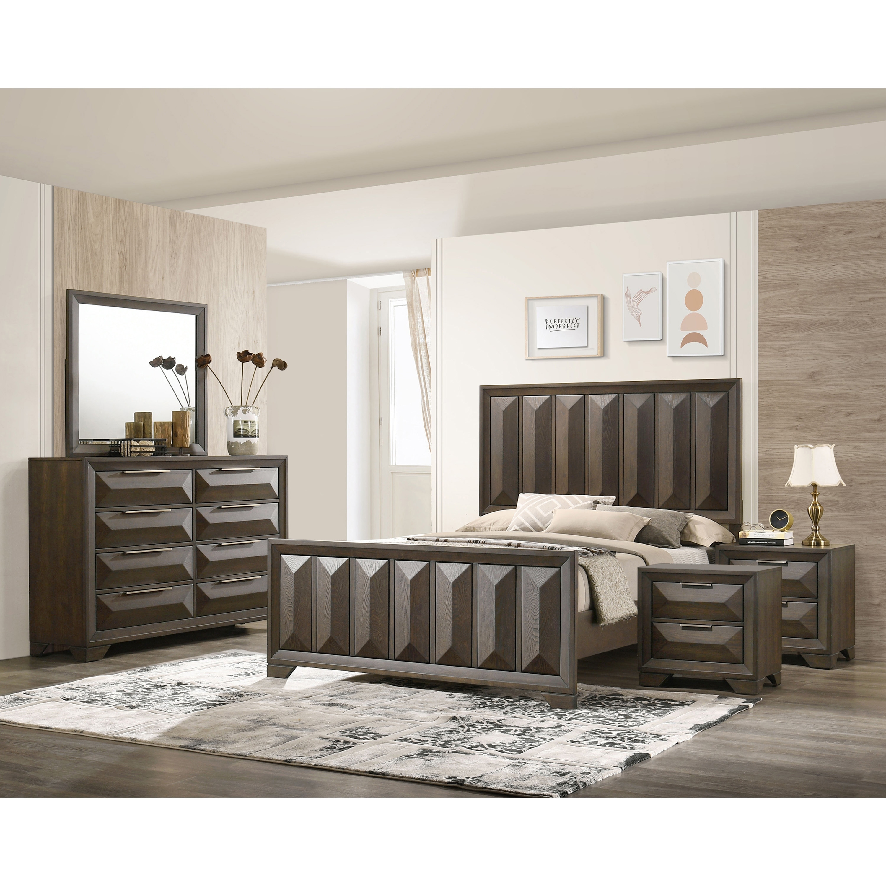 Furniture of America Uppon Transitional Espresso Wood 5-Piece Panel Bedroom Set