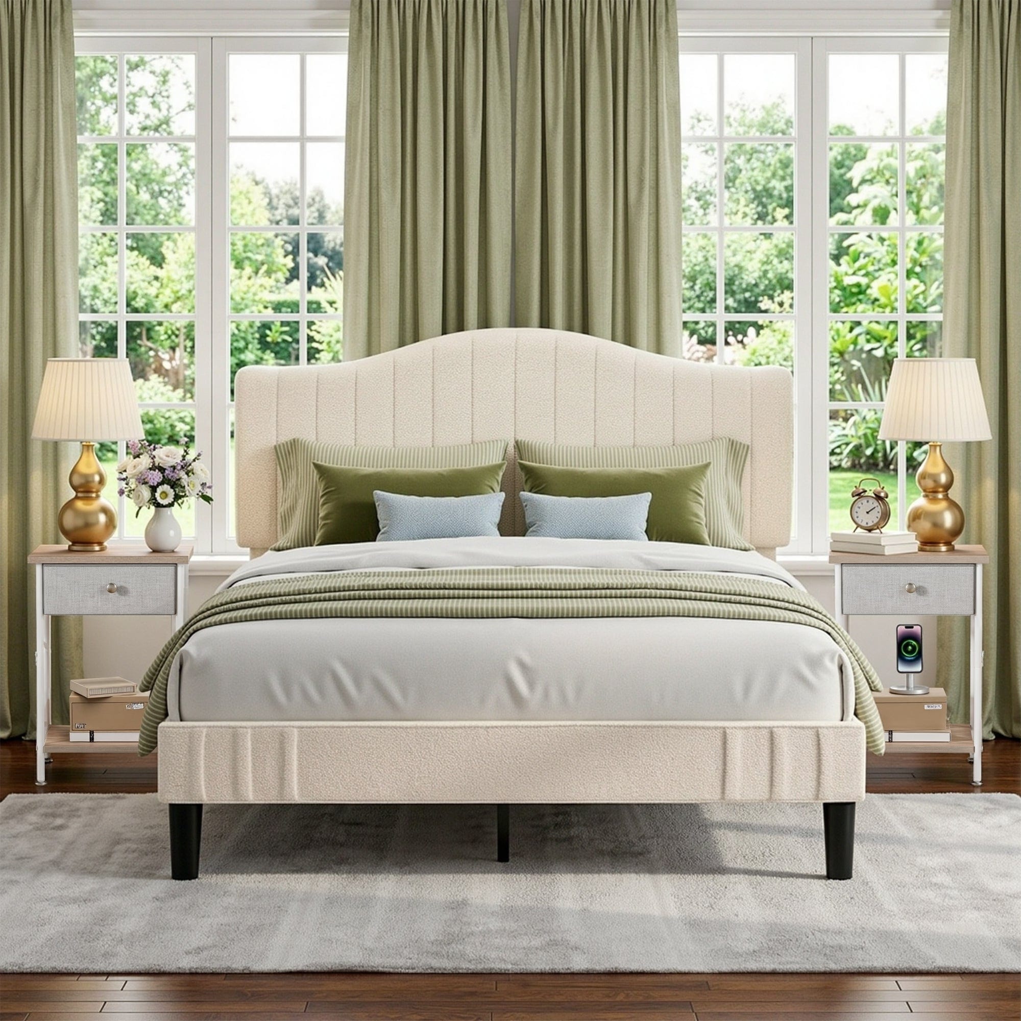 Javlergo 3 Piece Bedroom Set Beige Upholstered Bed Frame with Adjustable Headboard No Box Spring Needed Set of 2 Nightstands