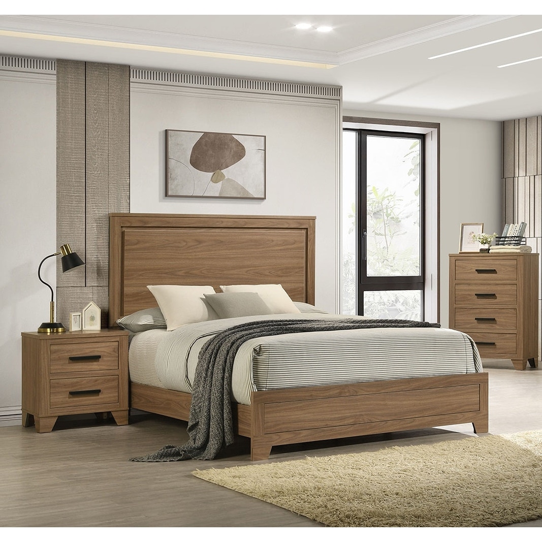 Classic 3pc Bedroom Set Bed Nightstand Chest Walnut Finish