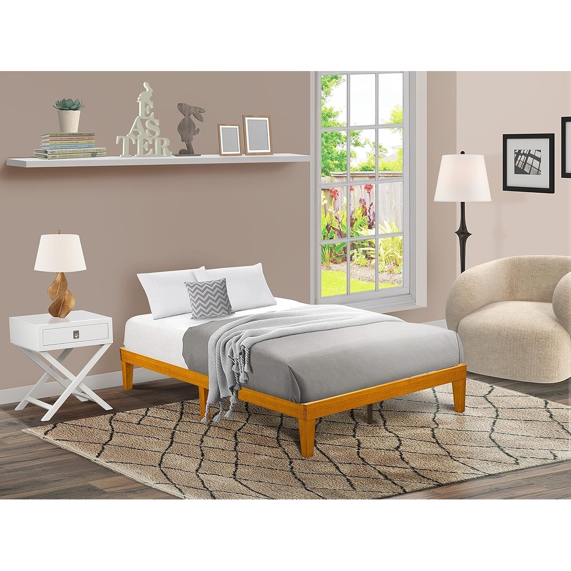 Full Size Platform Bed Frame with Solid Wood Legs and Oak Finish - Easy Assembly, Durable Engineered Wood Construction