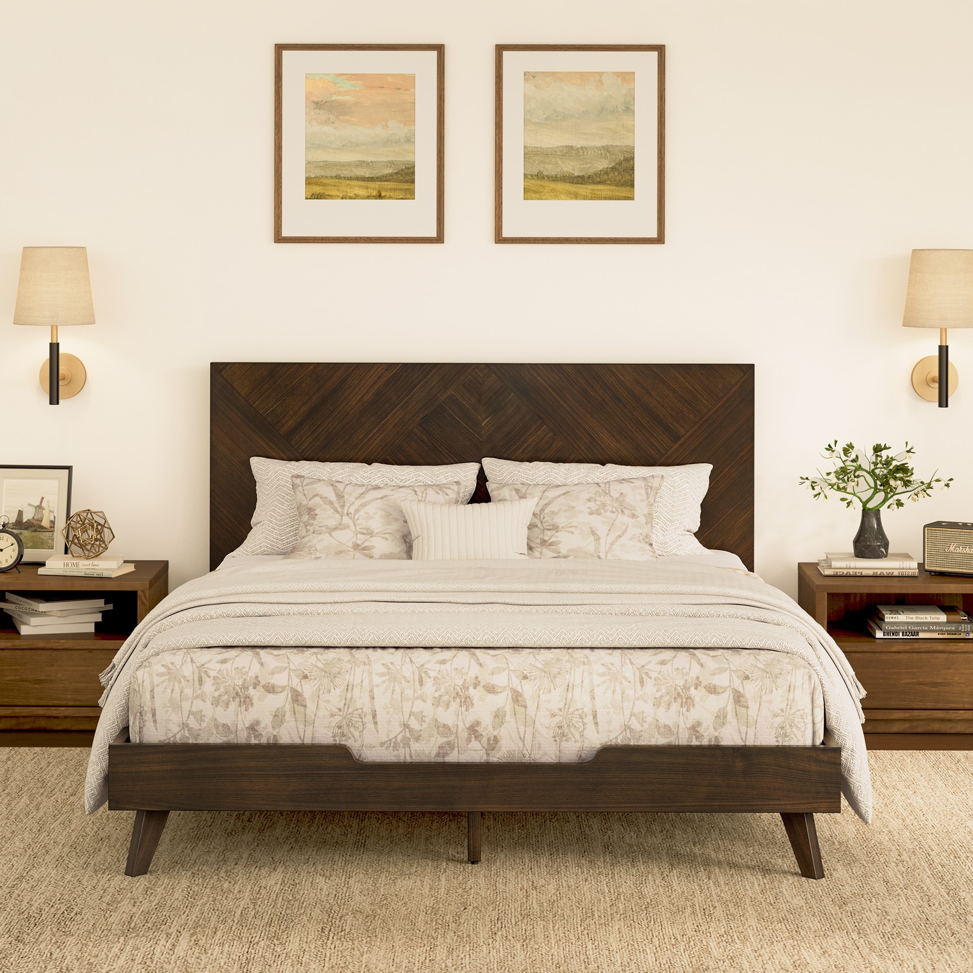 Mid-century Modern Solid Wood Bed Frame with Headboard
